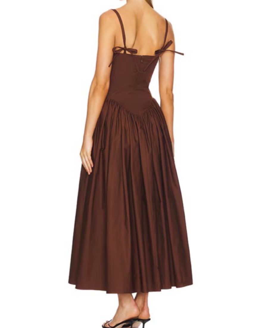 Hidden back zipper closure Adjustable tie shoulder strap closures gorgeous chocolate brown color. So cute for picnic vacations formal events birthdays