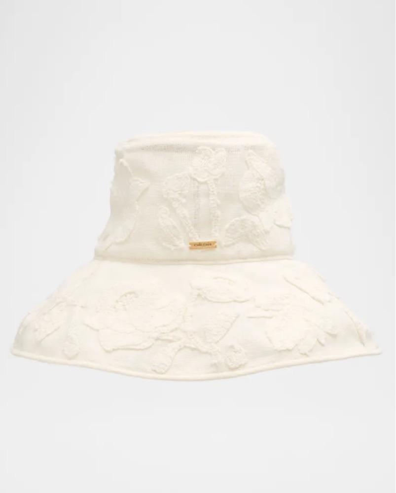 Cult Gaia "Juliana" bucket hat with floral appliqué Features logo metal accent Flat crown