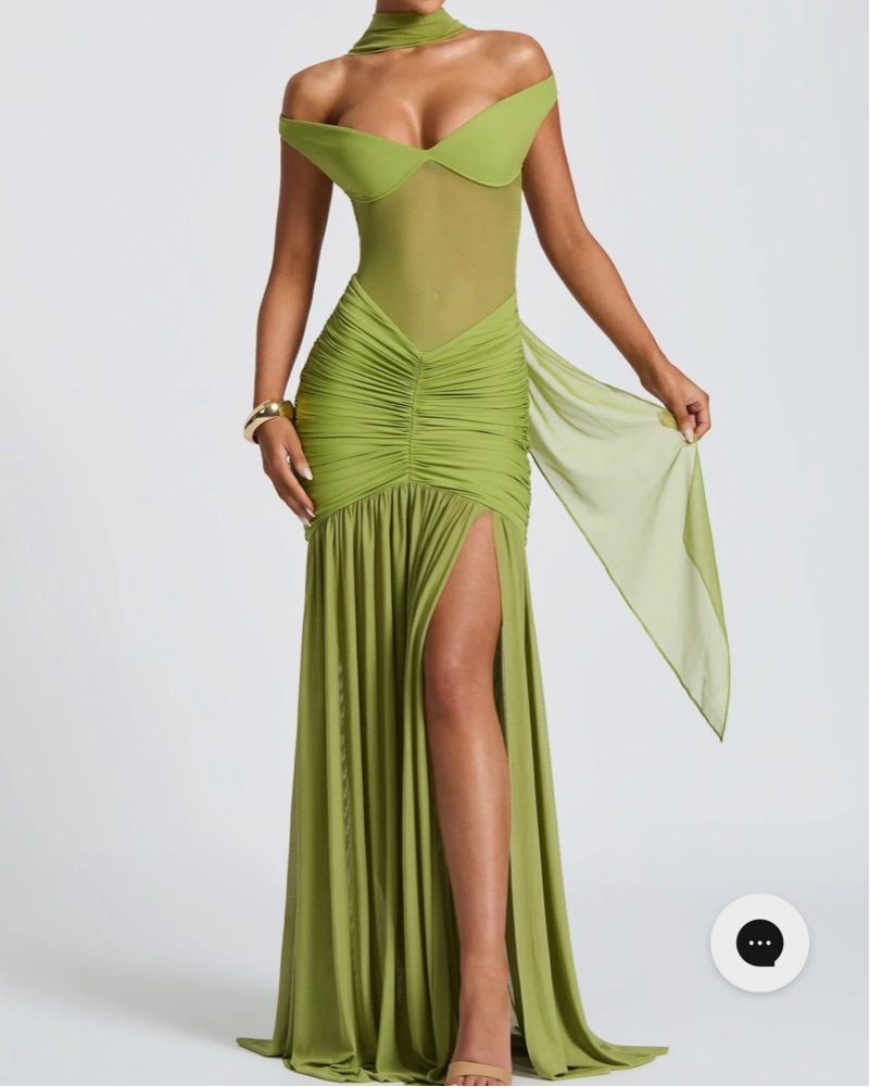 ALAIA MAXI DRESS - OLIVE with scarf perfect wedding guest dress (I didn’t wear scarf in photos but can provide)