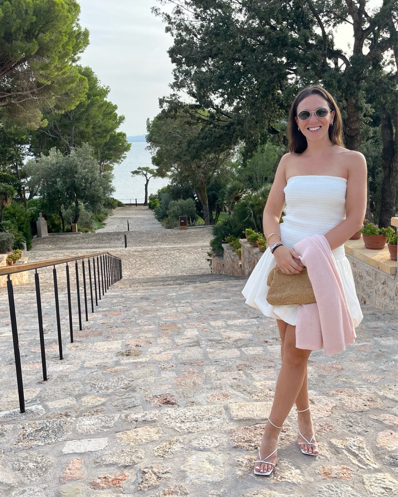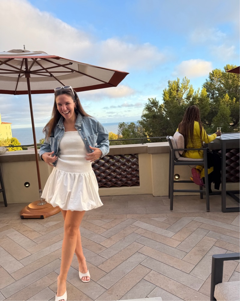 Great casual bachelorette dress. Dress came with removable straps, which I took off. Very comfortable and easy to wear!