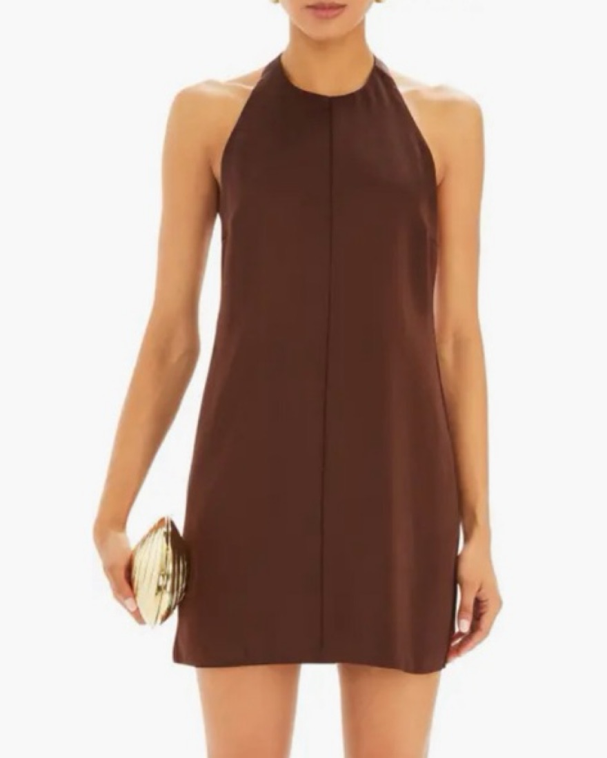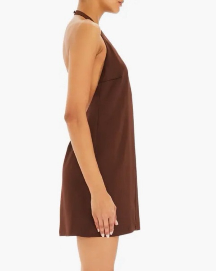 Seroya Riviera Halter Mini Dress- Brown