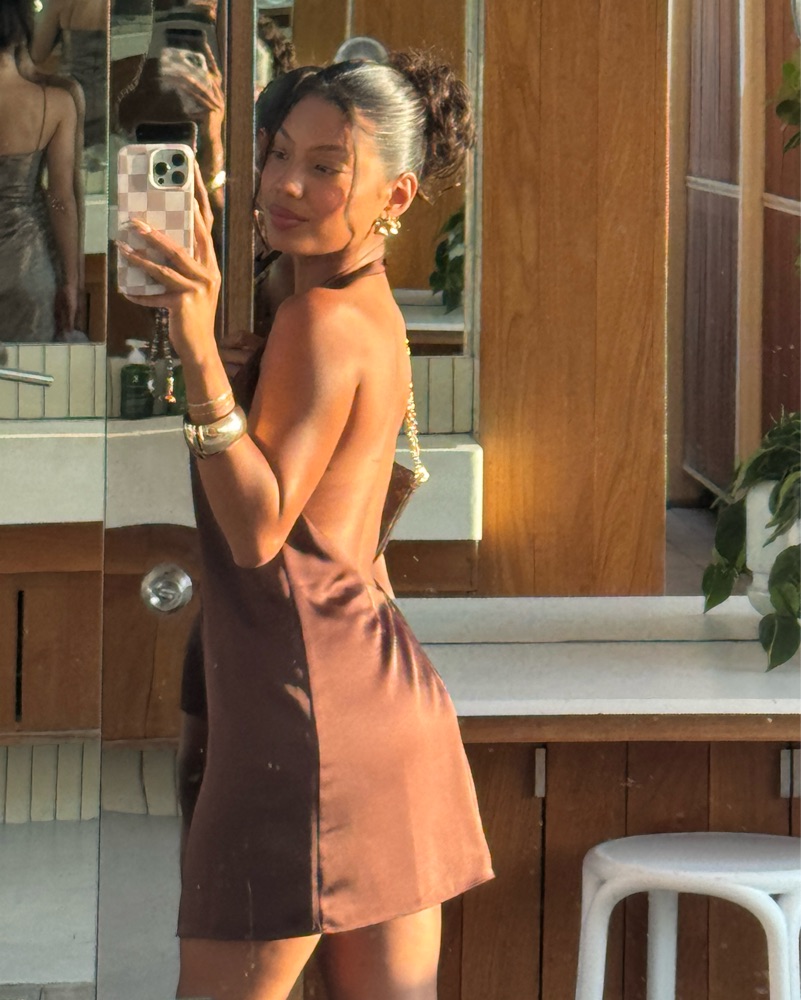 Seroya Riviera Halter Mini Dress- Brown by SEROYA - Pickle