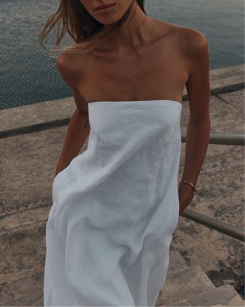 DISSH Karney White Linen Strapless Dress