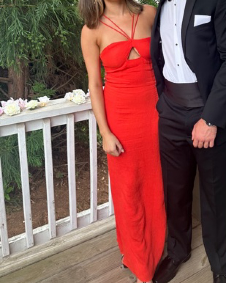Ribbed orange/redish maxi! Perfect for sorority formal or summer wedding! I’m 5’6 135 lbs for reference and wore 3 inch heels.