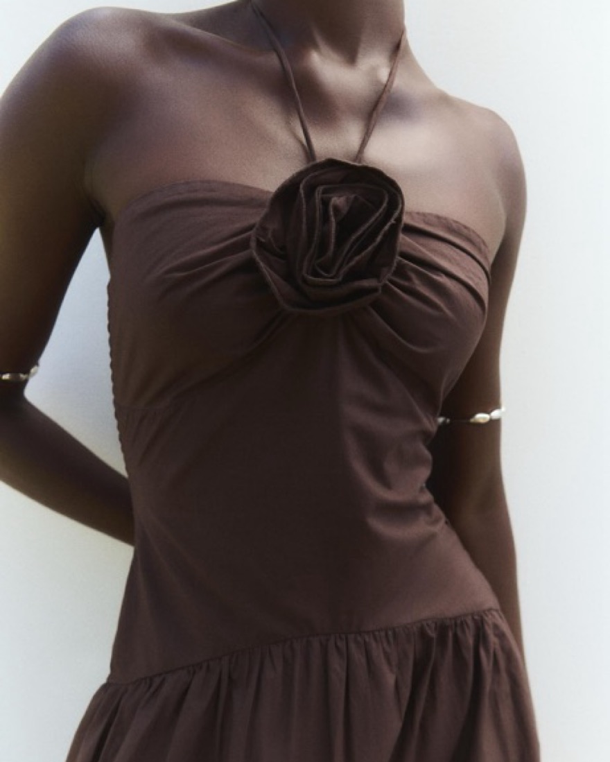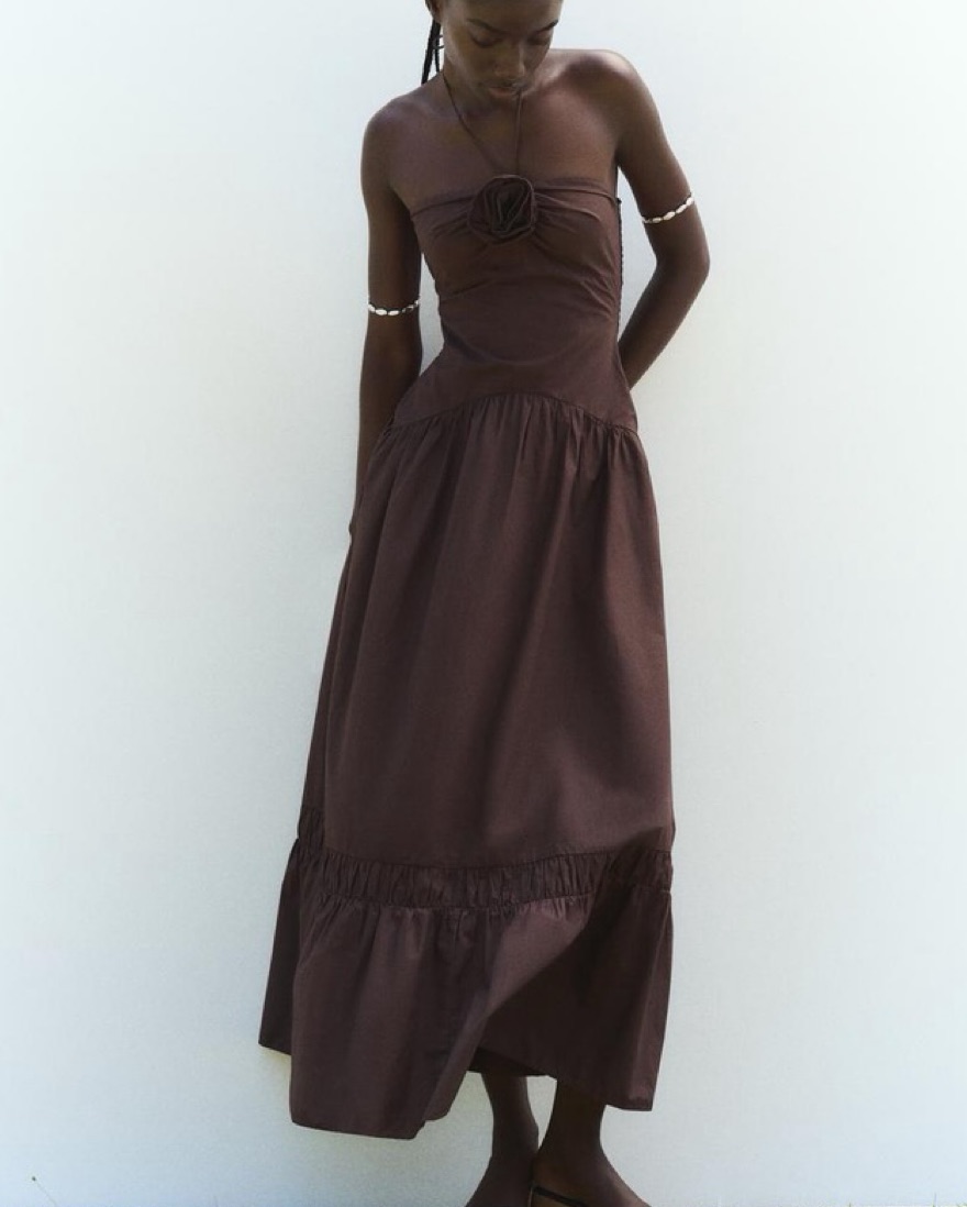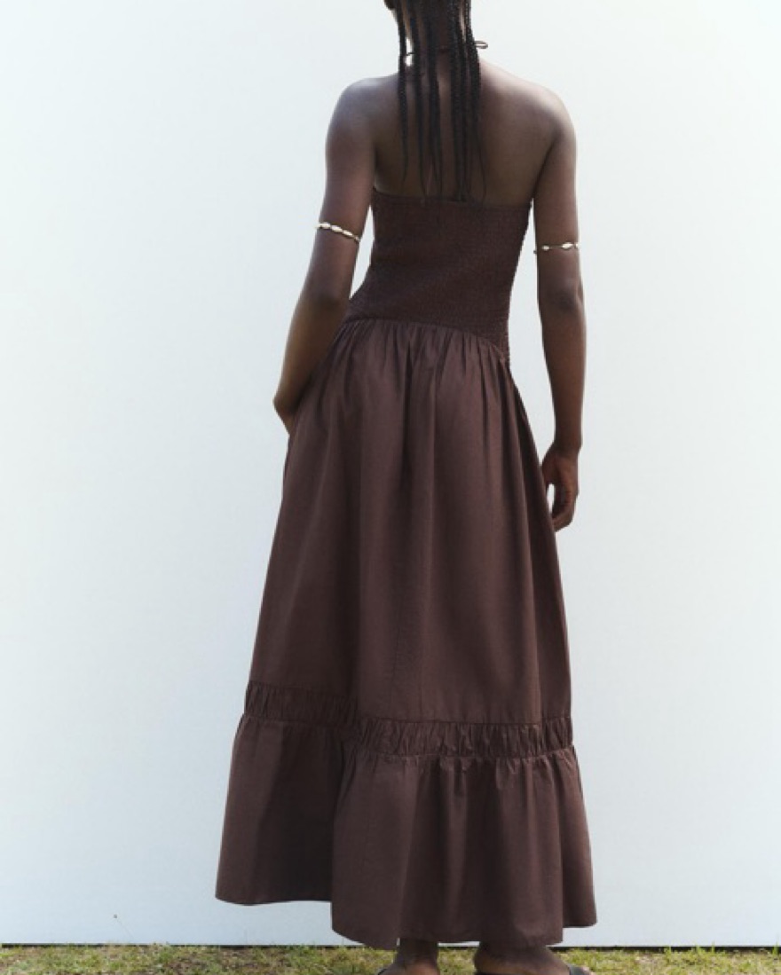 Brown Drop Waist Maxi Dress by Zara - Pickle