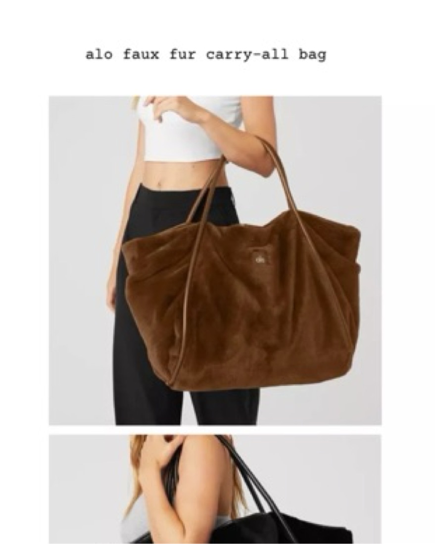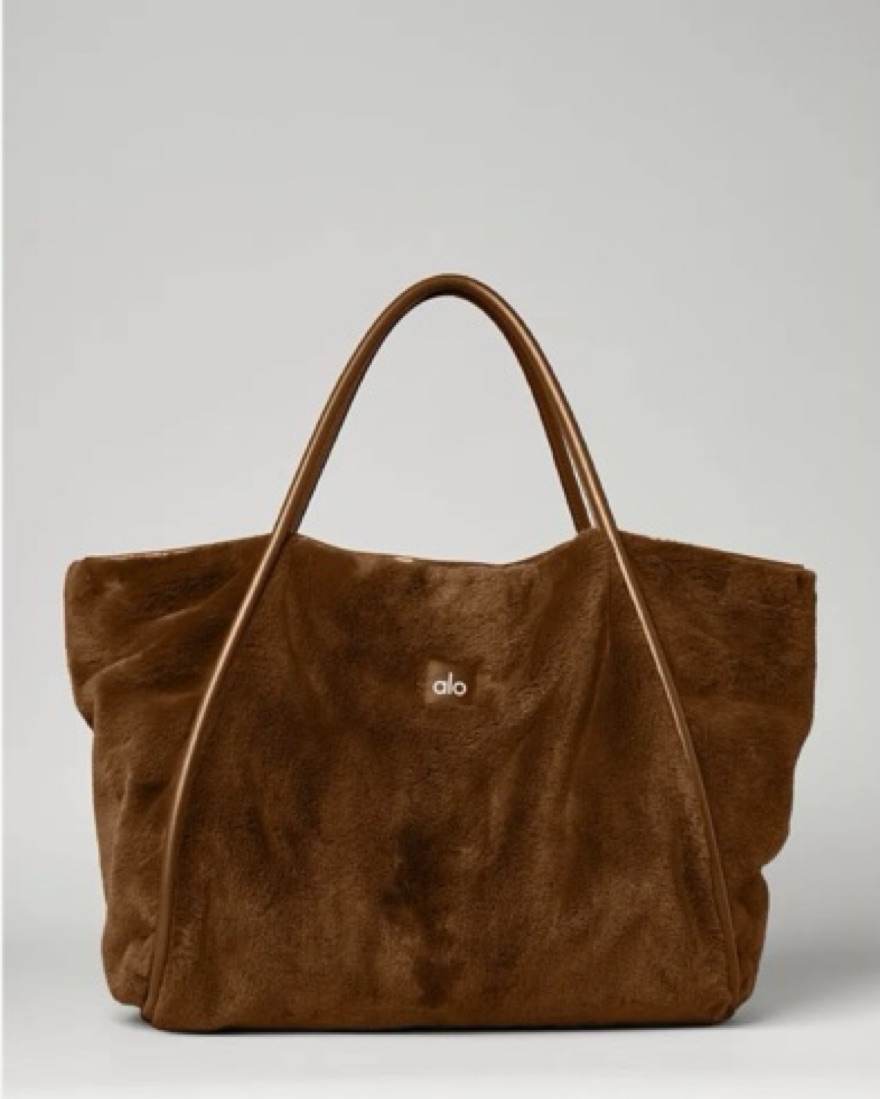 Alo fur tote in toasted. Good for travel or work