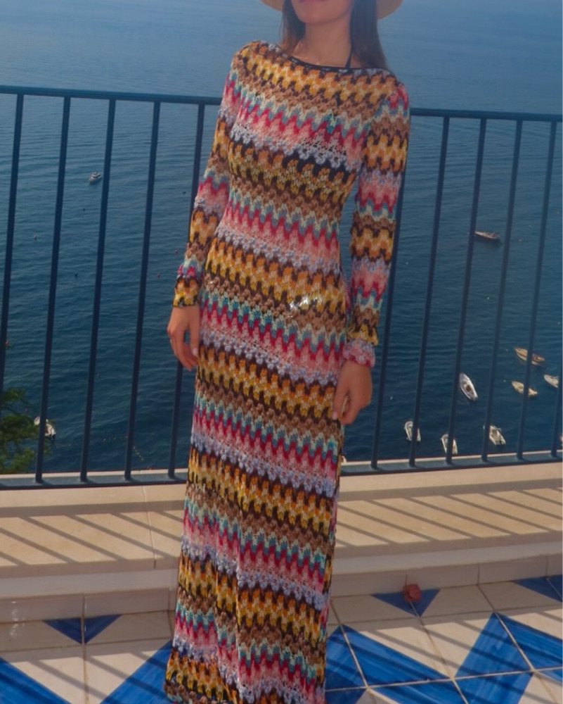 High Neck Low Back Missoni Coverup. Please be careful as the fabric can pull very easily. Damages will incur a fee