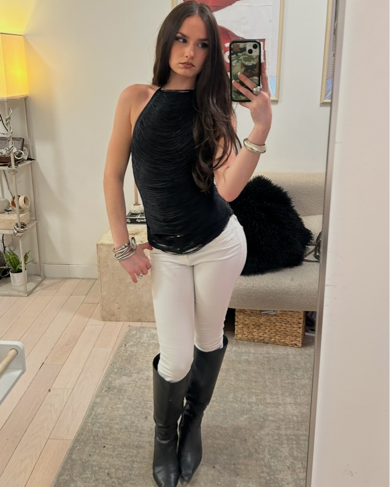 Sophisticated Black Fringe High Neck Top by ZARA - Pickle