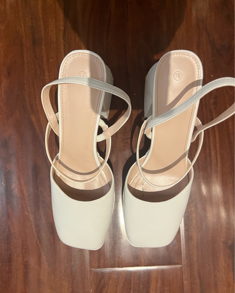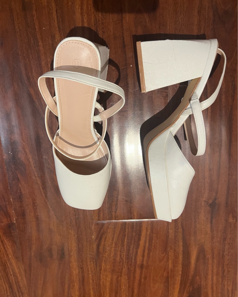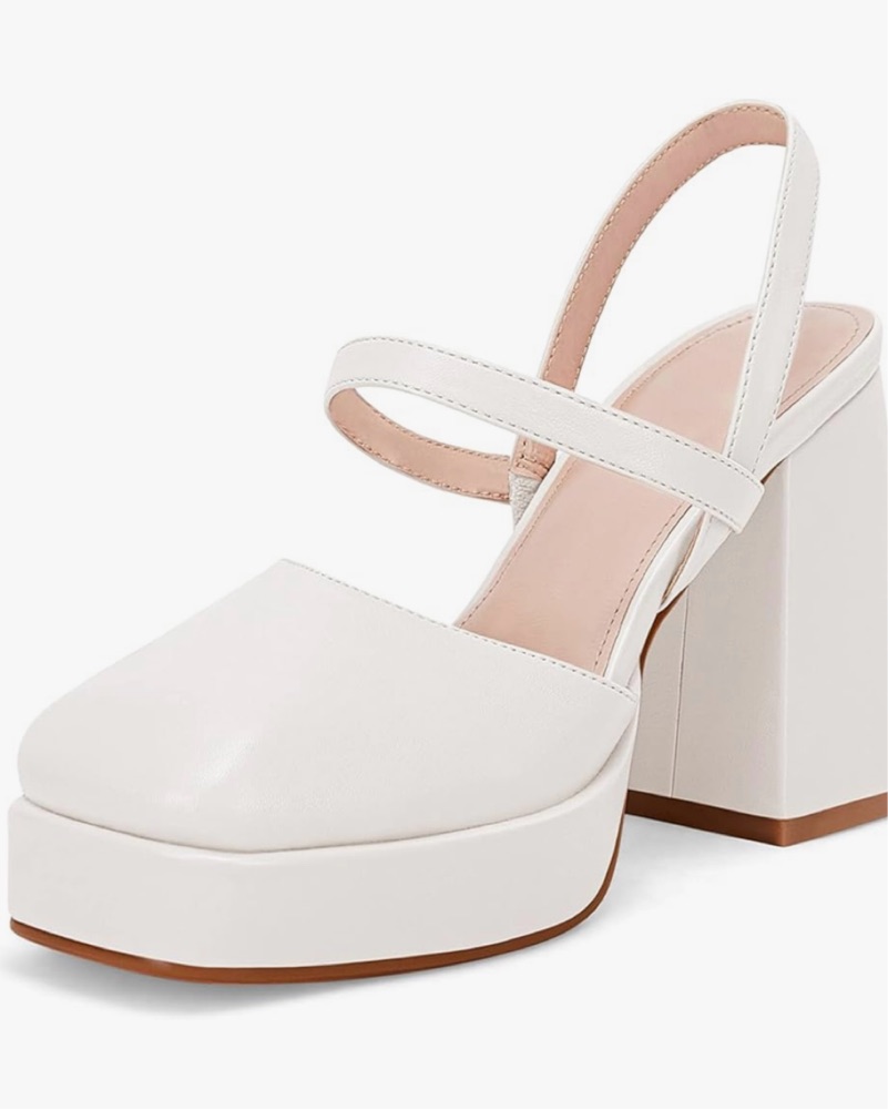 These stylish platform heels are perfect for a night out or a special occasion. The sleek white design and high block heel add a touch of sophistication to any outfit.