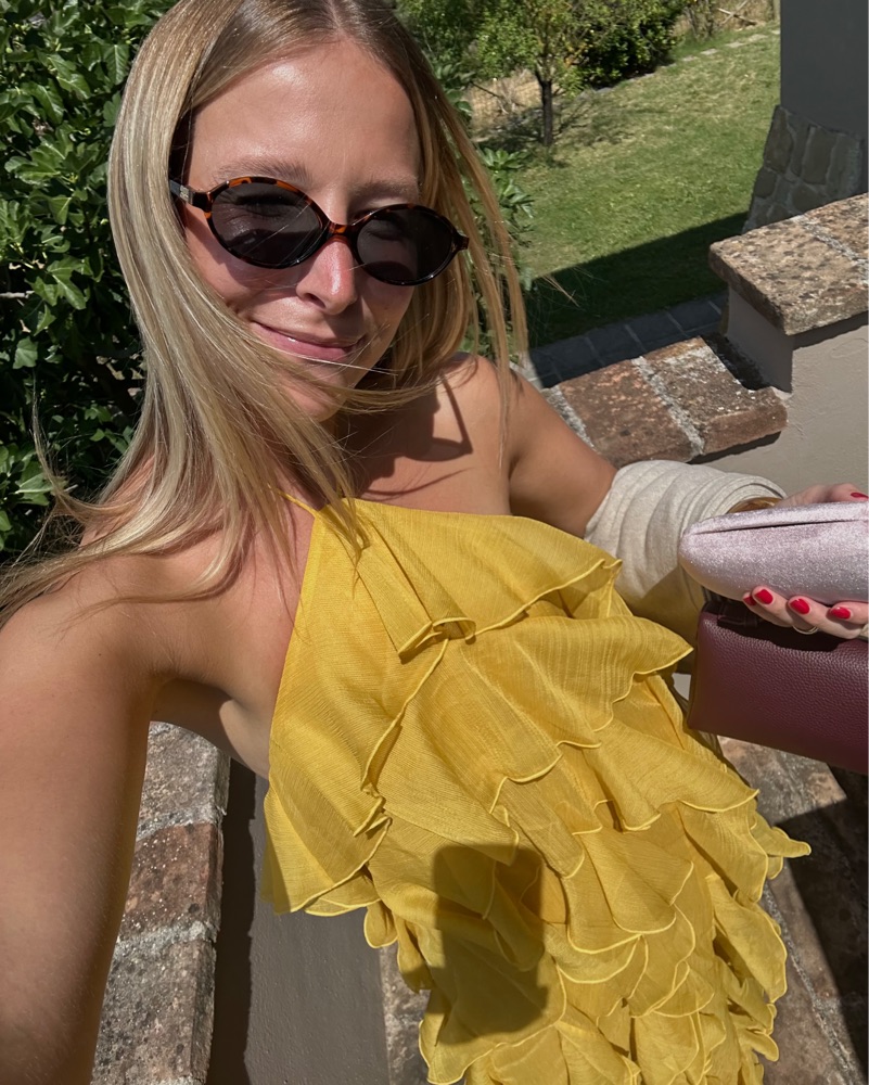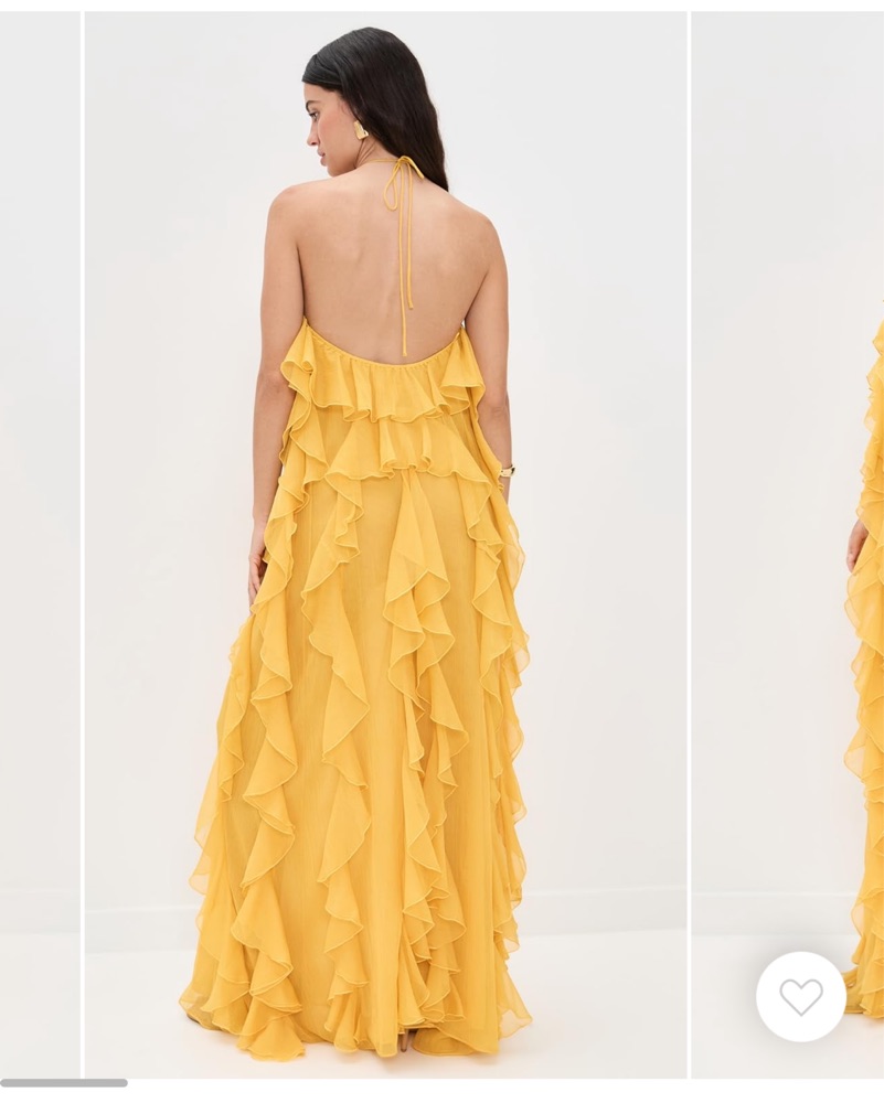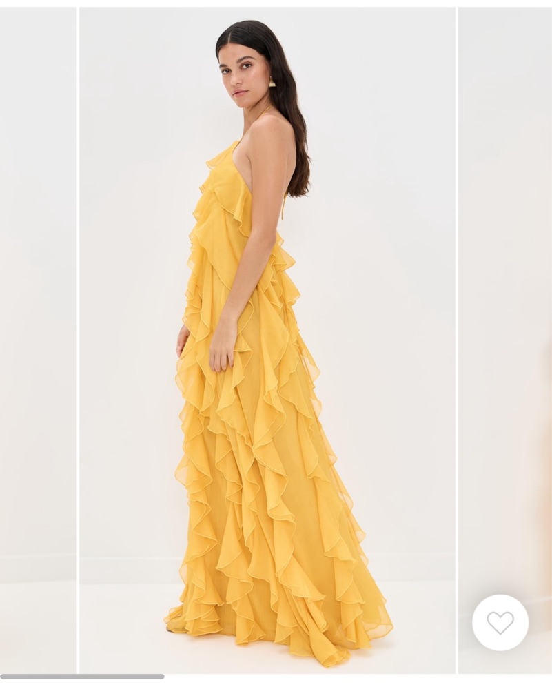 Ronny Kobo Yellow Liora Dress in perfect condition, worn once. Size small, fits TTS but NOT hemmed so need to be careful w that/wear high enough heel to avoid snagging. Cost includes dry cleaning.
