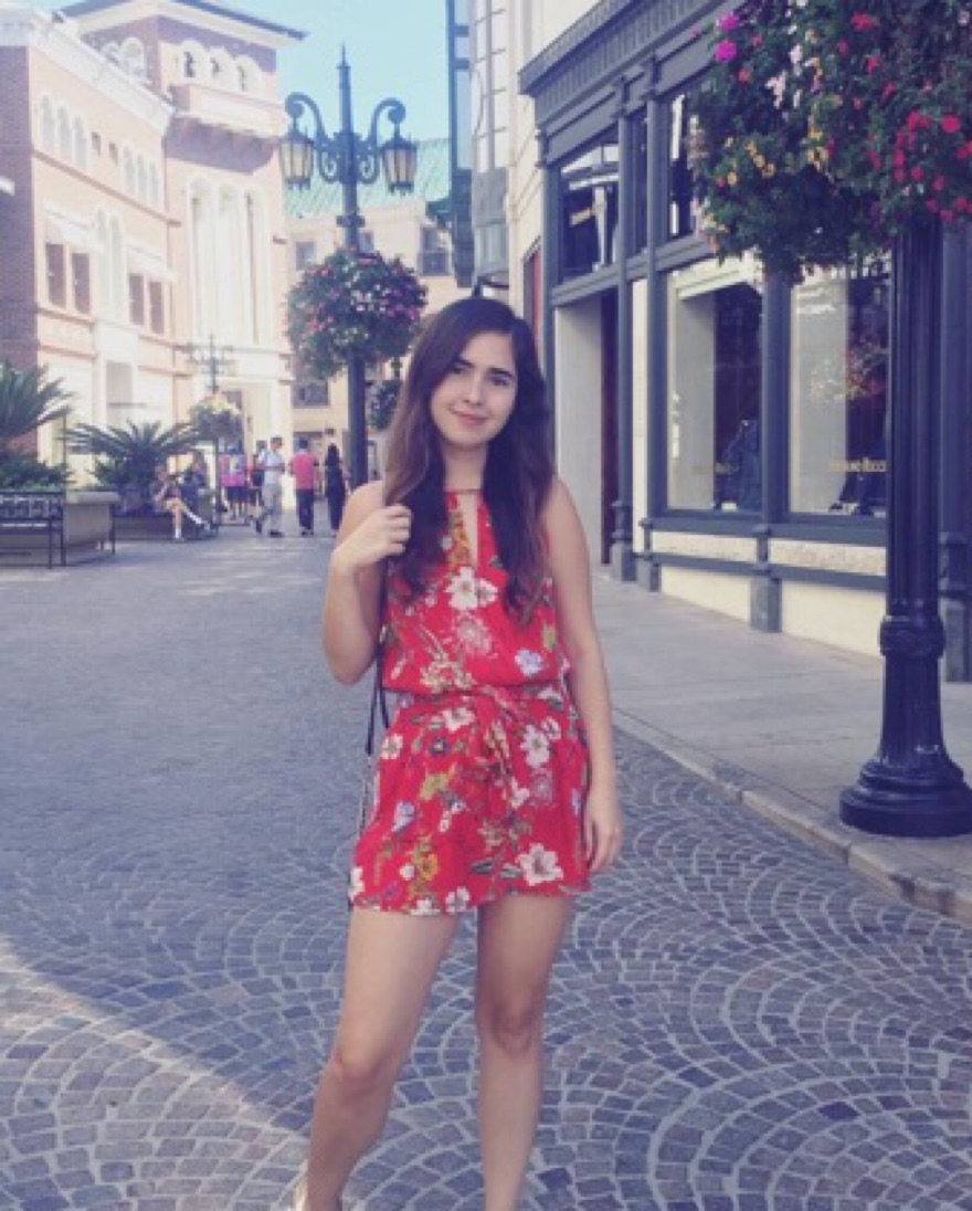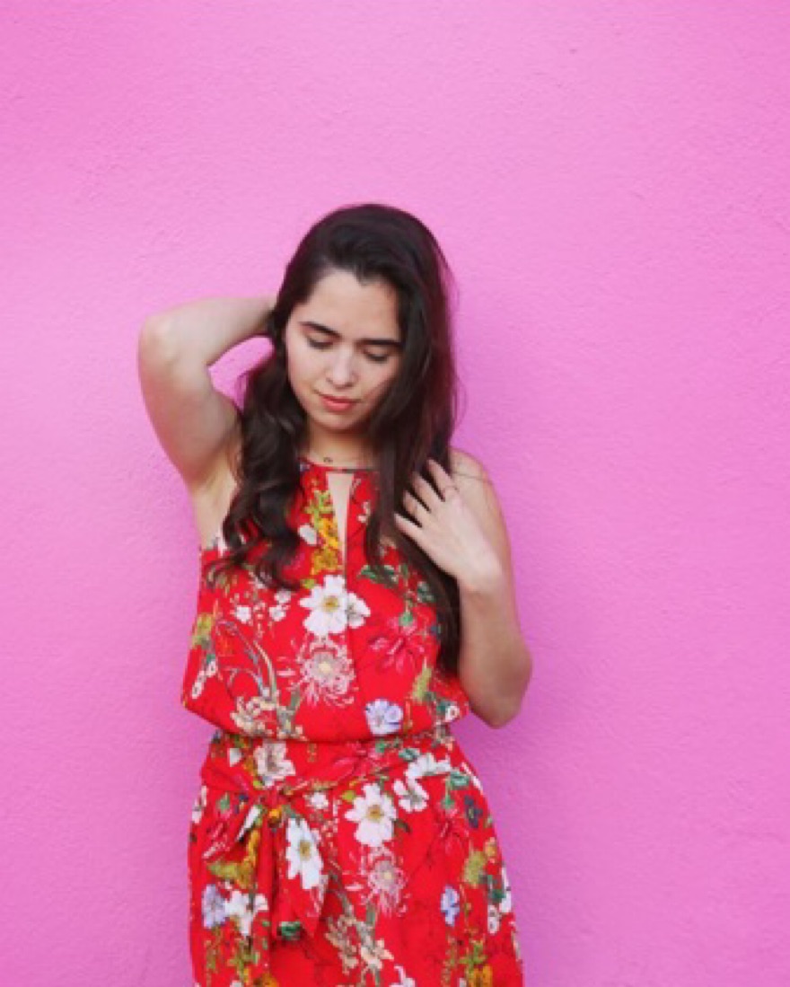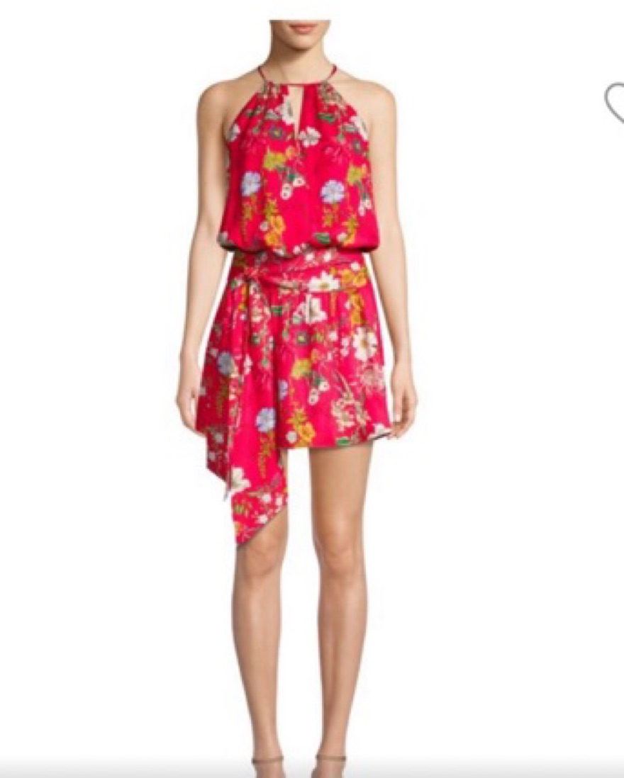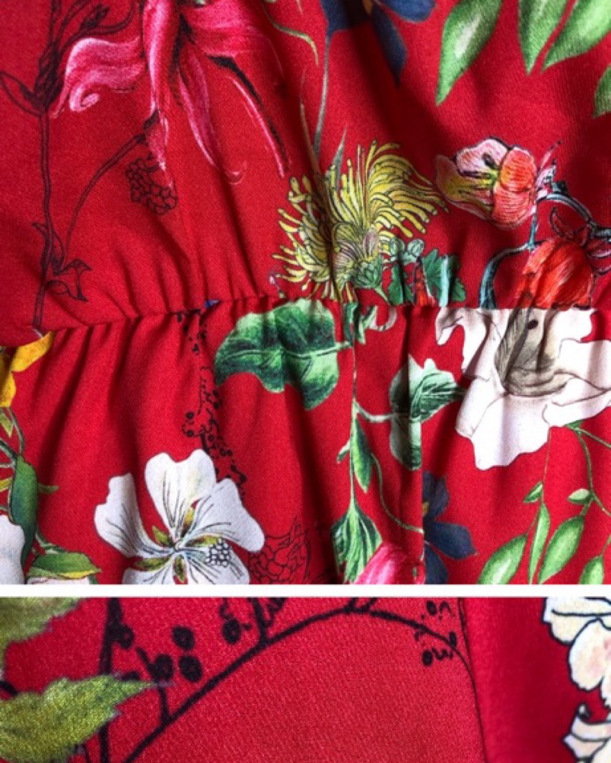 100% silk mini dress, smocked waist, high neckline