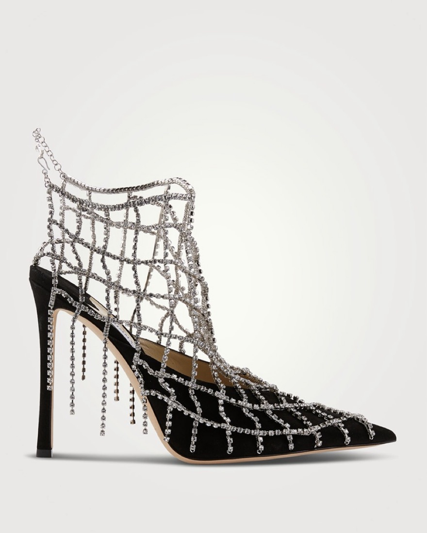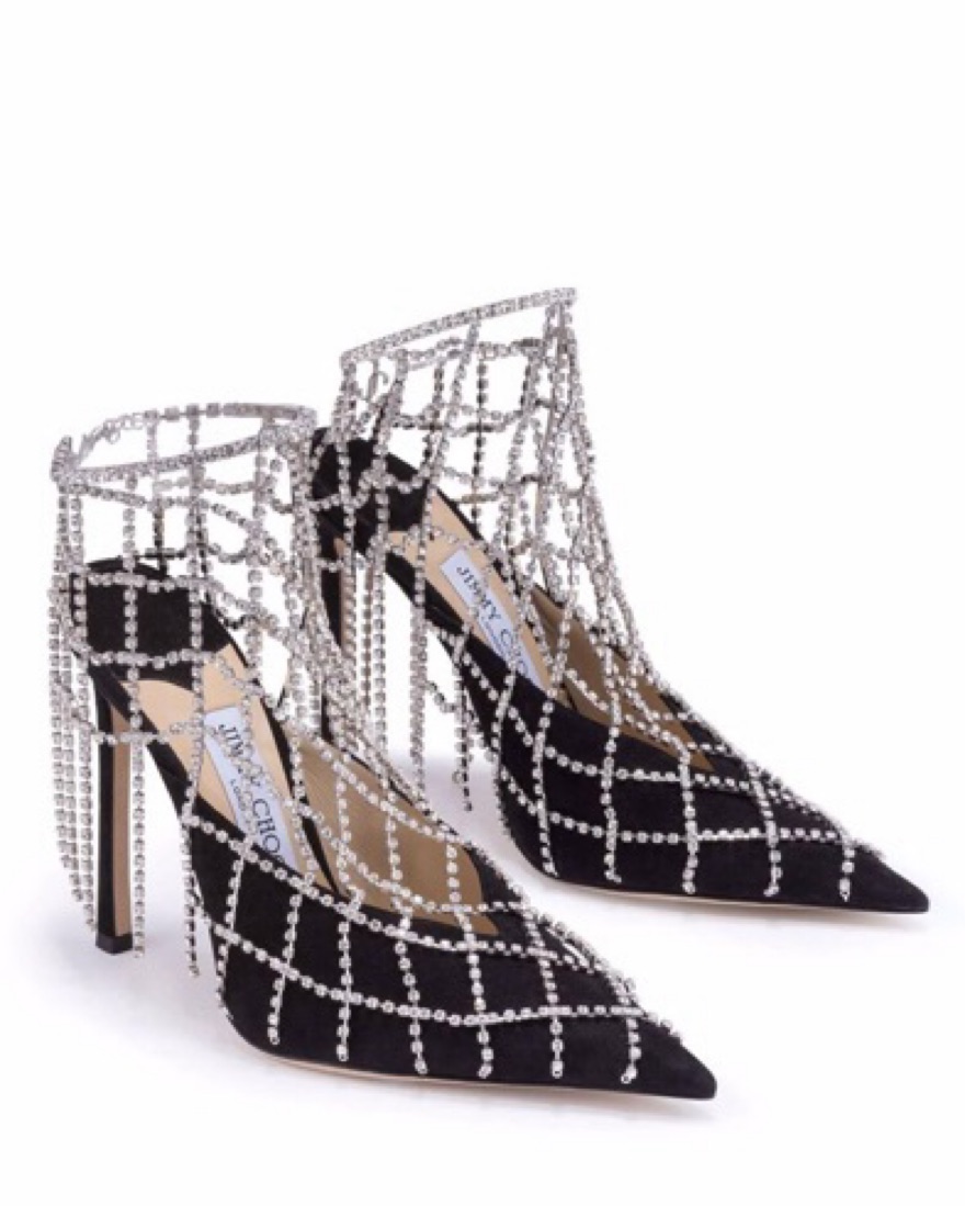 The Scotty mules latticework of crystal chains that are crafted 2000 individual crystals. Black suede, slim 110mm heels, a secure fastening at the back and the signature silver JC emblem. **kindly note I used to work at Jimmy Choo so some of the labels are marked but it’s barely noticeable