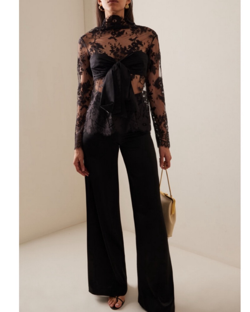 Crafted from sheer lace, this top is wrapped in lustrous silk satin and tied off with a bow. Back zip. Zimmermann 0