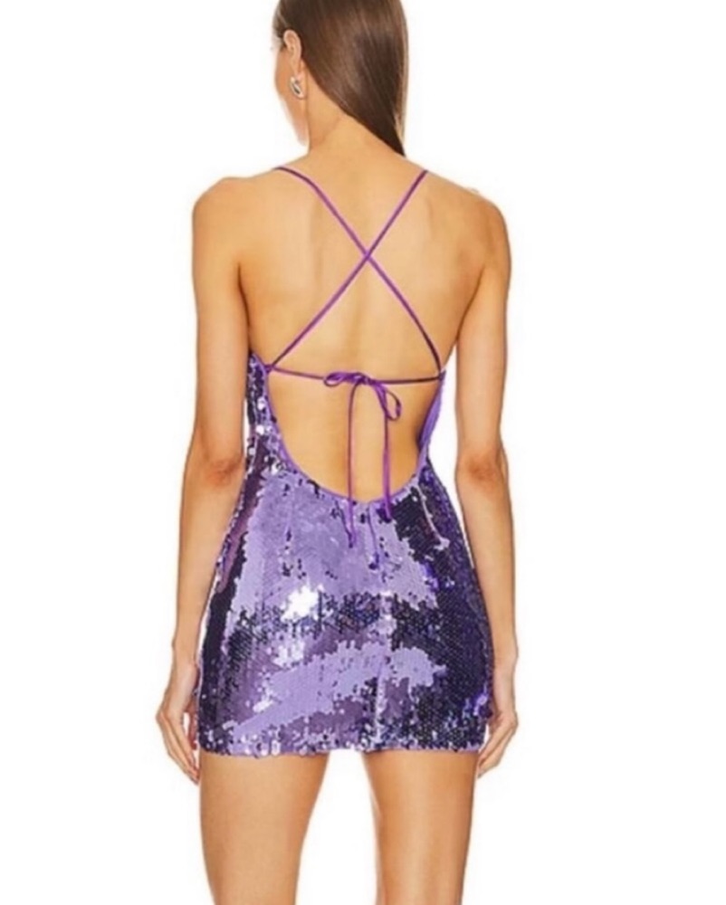 This Michael Costello x Revolve Taja mini sequin dress is perfect for a night out. The back is exposed and features a string to tie.