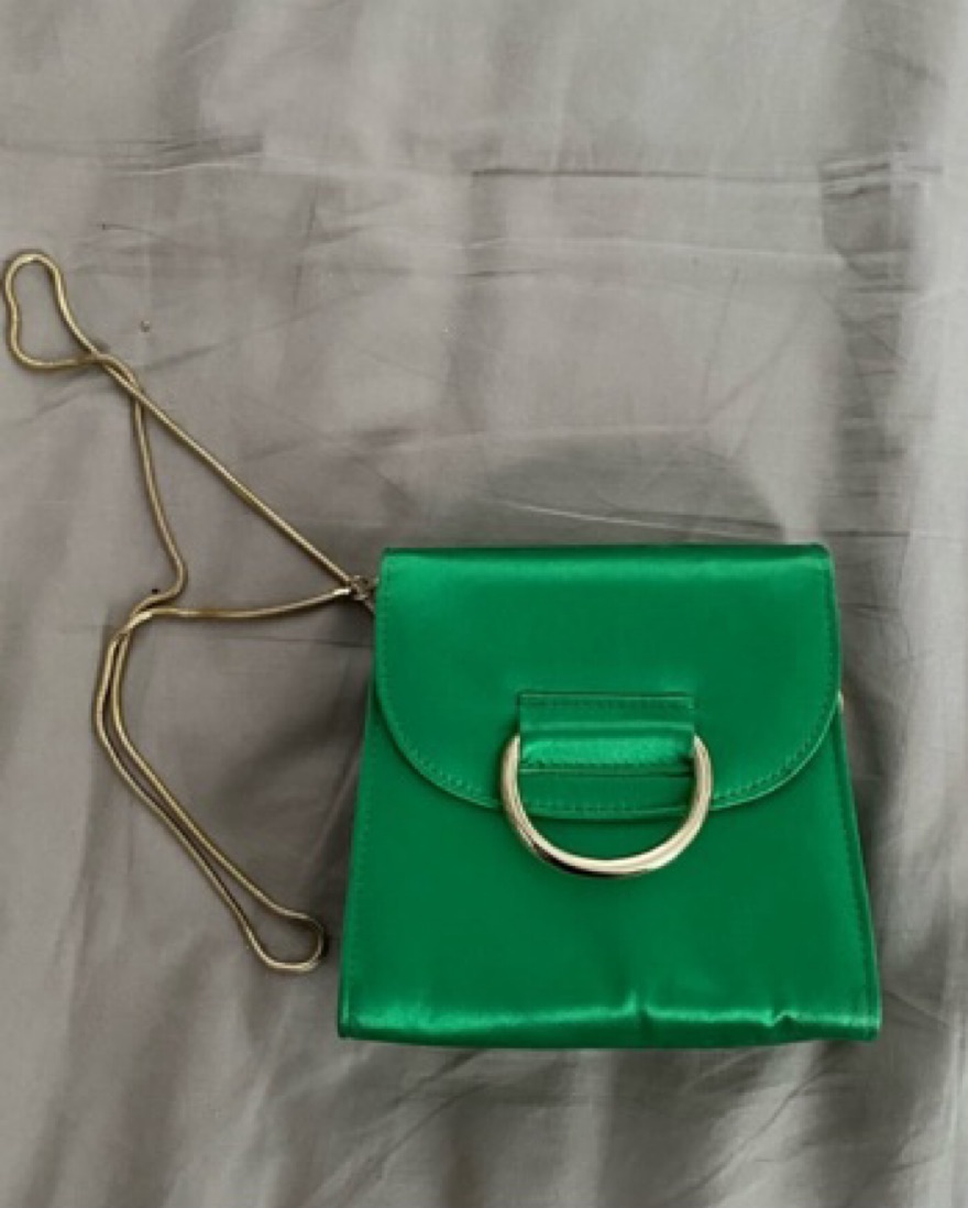 Little Liffner Emerald Green Satin Tiny Box saddle bag, mini bag. Rare find