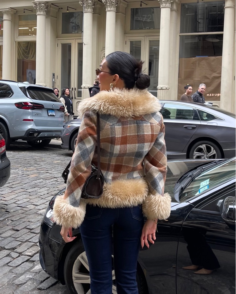 Adorable fur lined coat that I got at a vintage store in Brooklyn - one of a kind piece! I usually wear XS and it fits me perfectly. Could fit size S too.