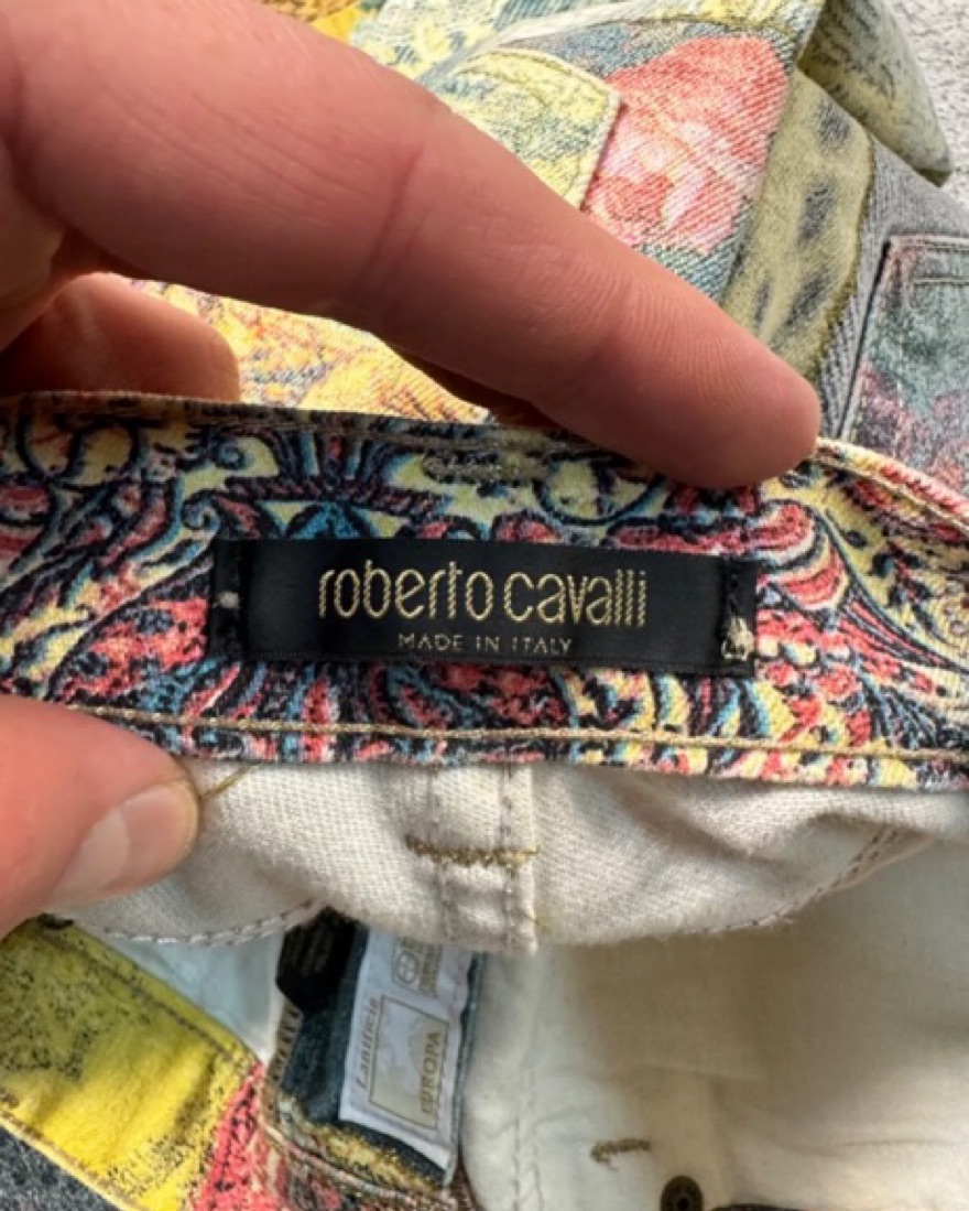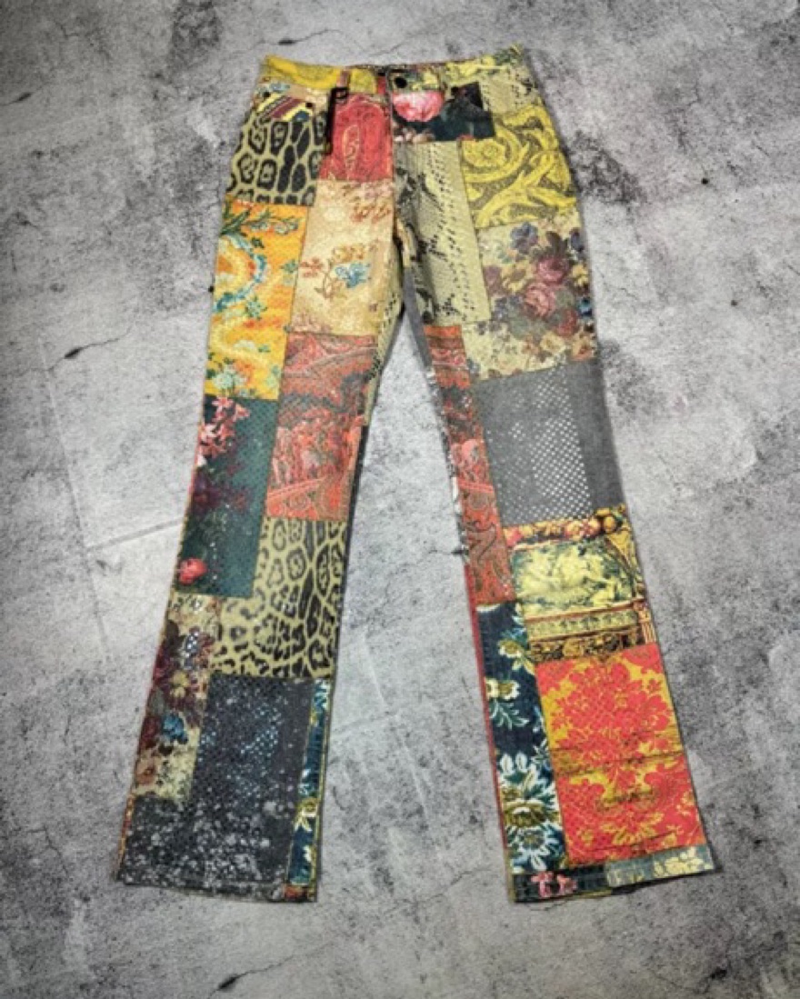 Rare Vintage Roberto Cavalli flare patchwork jeans in amazing condition. Perfect way to elevate a look.