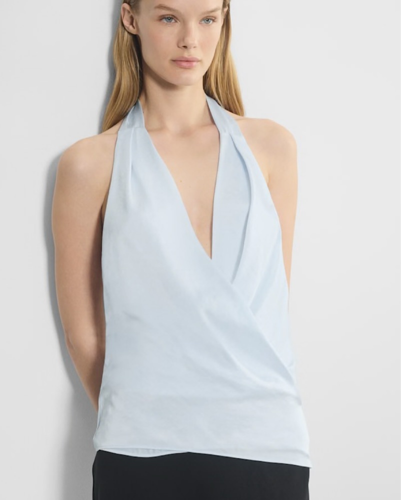 Baby Blue Satin Aritzia Drapped Top by Aritzia - Pickle