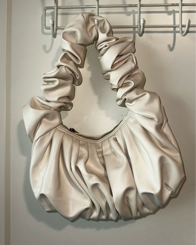This sophisticated scrunched shoulder bag is perfect for an evening out. The structured silhouette makes it a chic accessory to elevate any special occasion outfit.