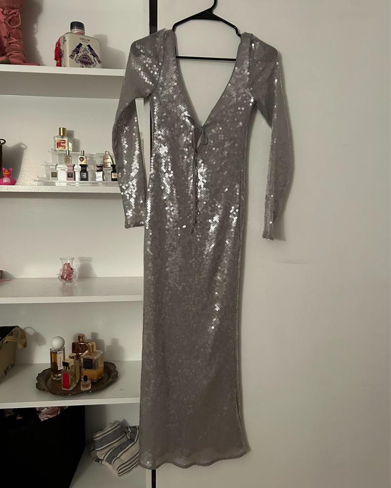 Silver sequin long dress size small! Price negotiable