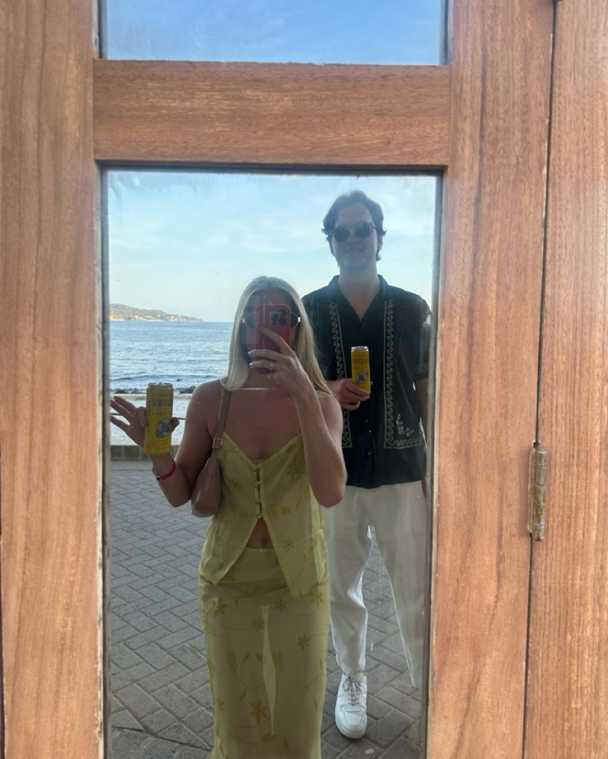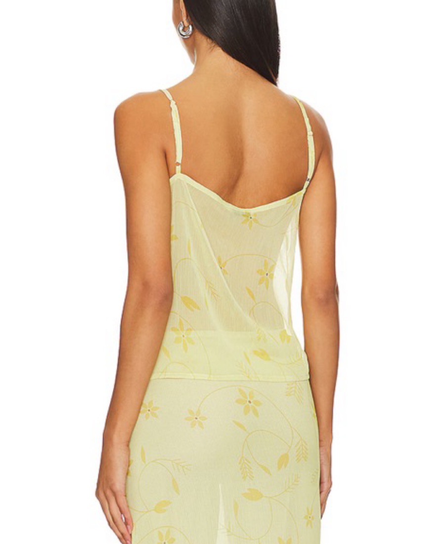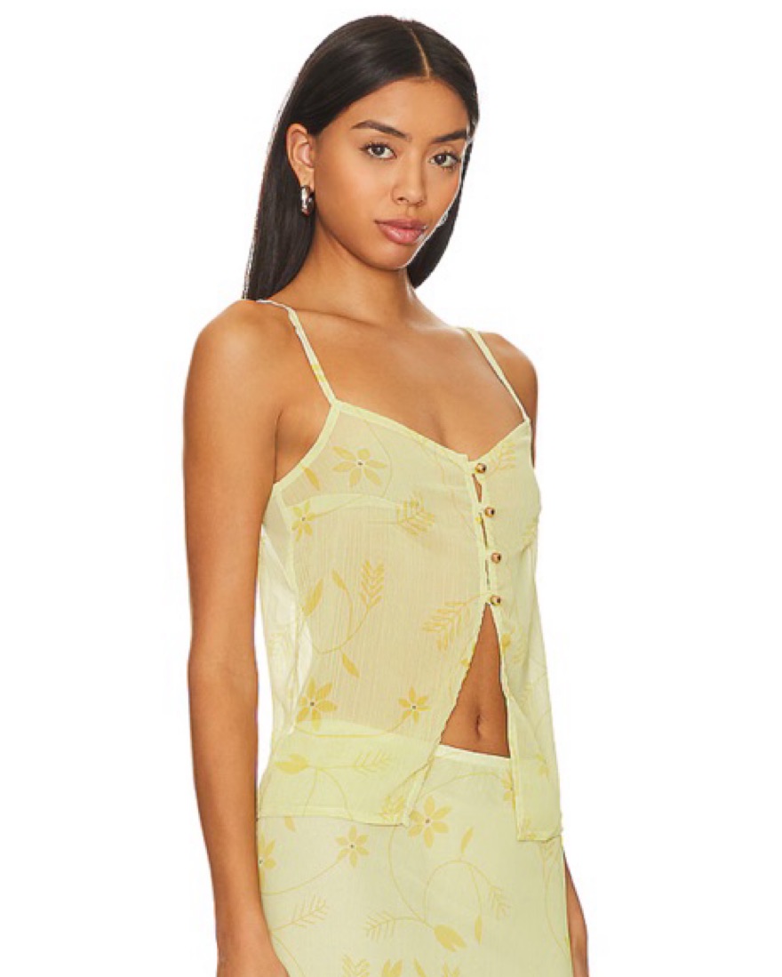 Musier Paris two piece set skirt & top - yellow wirh a suble print, skirt in size 36 (6, sits low on the hips) / shirt in size 34 (4). Worn once!