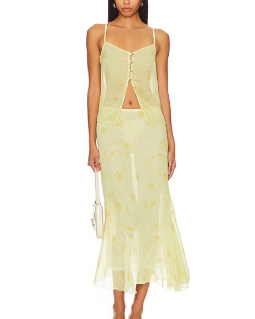 Musier Paris Yellow Top And Skirt by Musier - Pickle