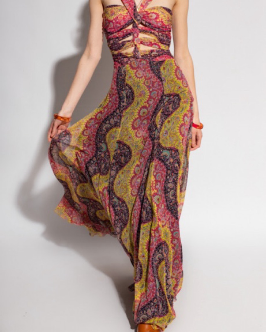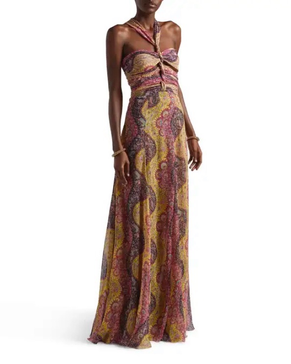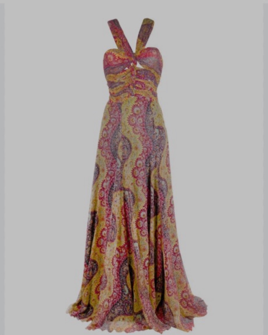 Etro paisley print gown. Can be dressed up or down for a formal event or vacation dinner. Could fit a xs or small. Originally around 3800. Price lowered to lower shipping costs.