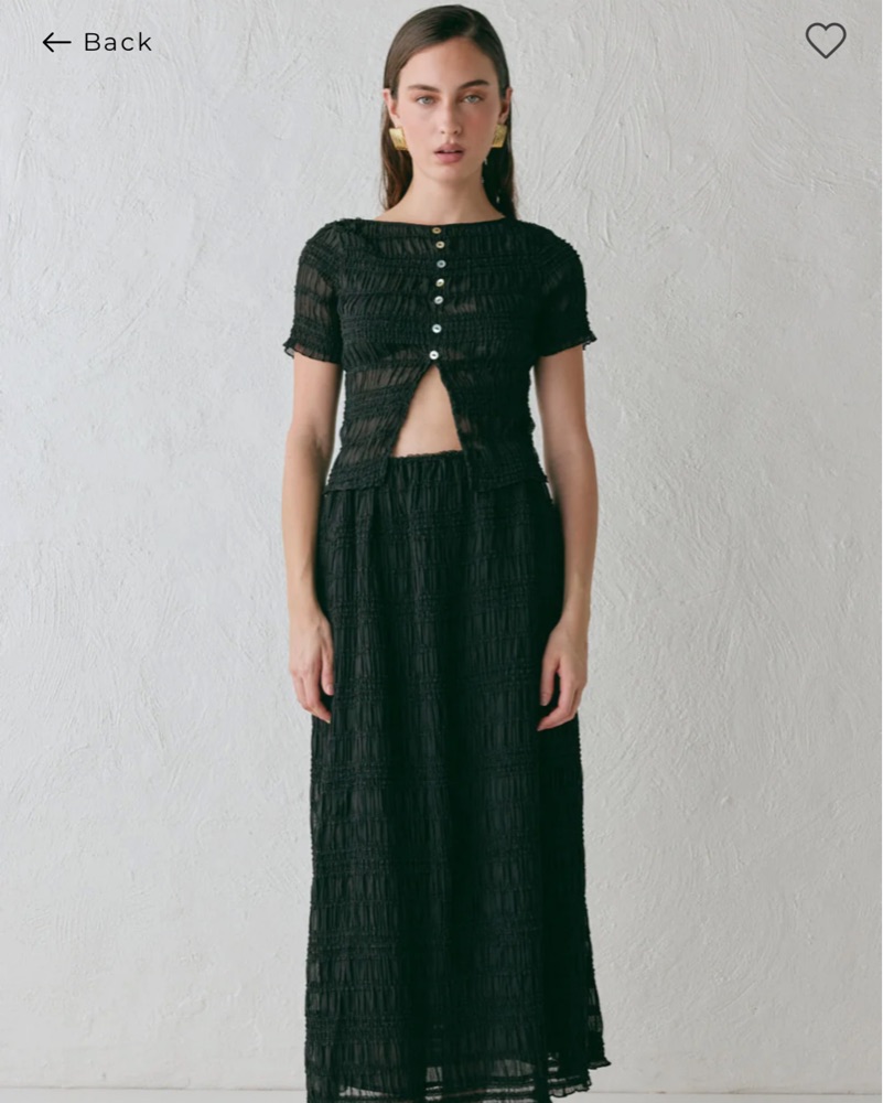 Vrg girl Mia midi skirt and Sofia top in black. Can be worn separate or as a set. Very cute and comfortable. AUS 8 (US 4) in both