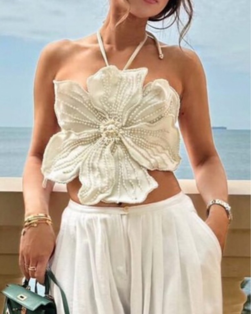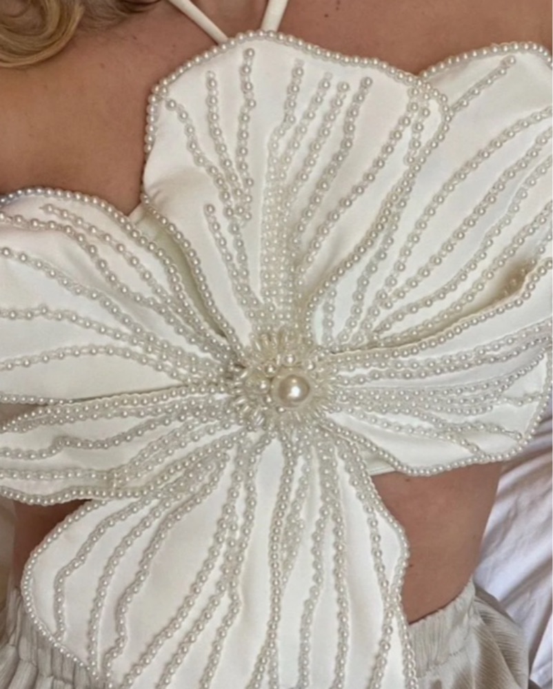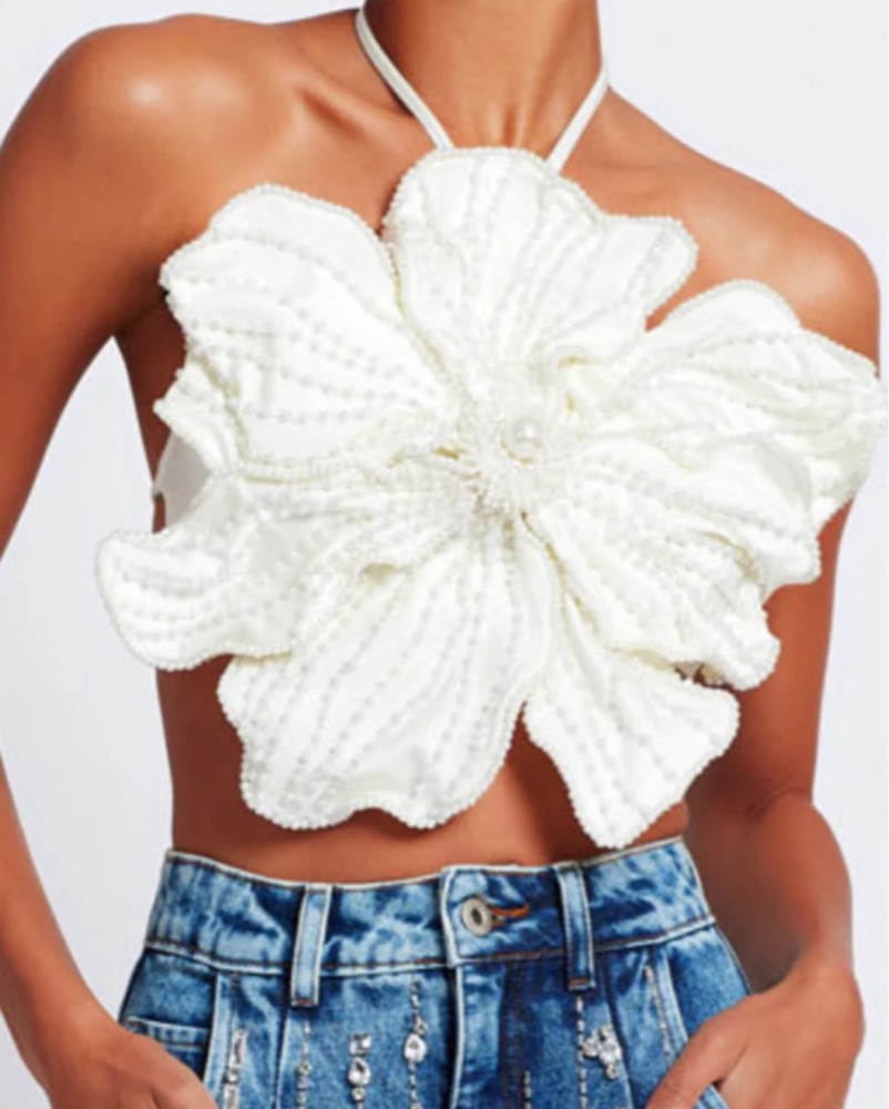 Patbo Hand Beaded White Flower Top XS by PatBo - Pickle