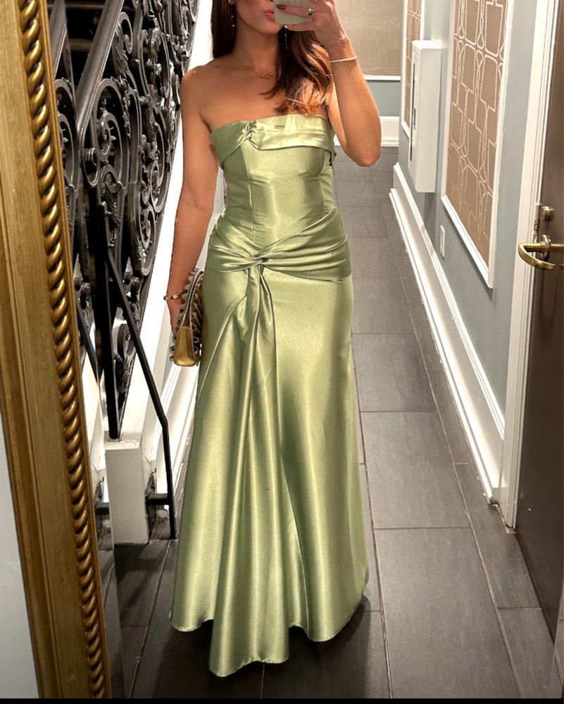 Vintage vibrant green corset gown with bow/tie detail. Size 6 (fits closer to a 4). Dry cleaning included in price. Reminiscent of the Anthropologie drop waist gown!