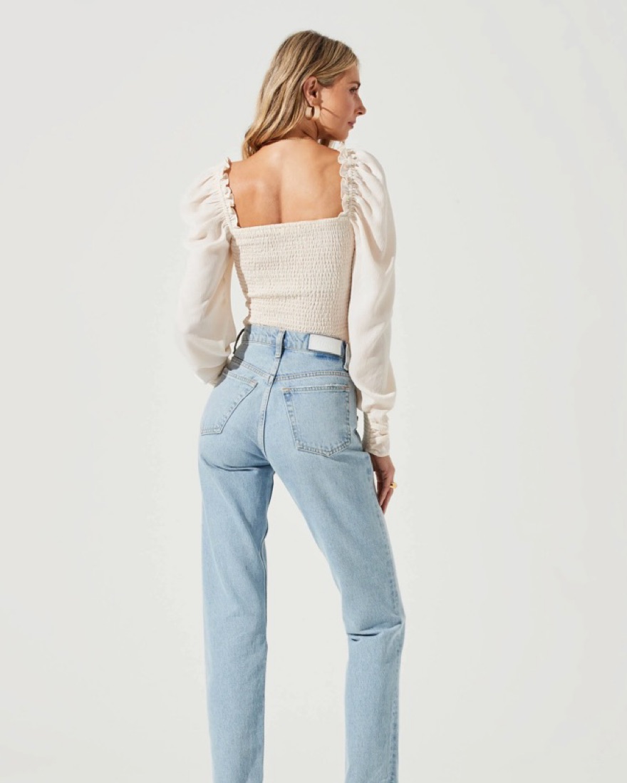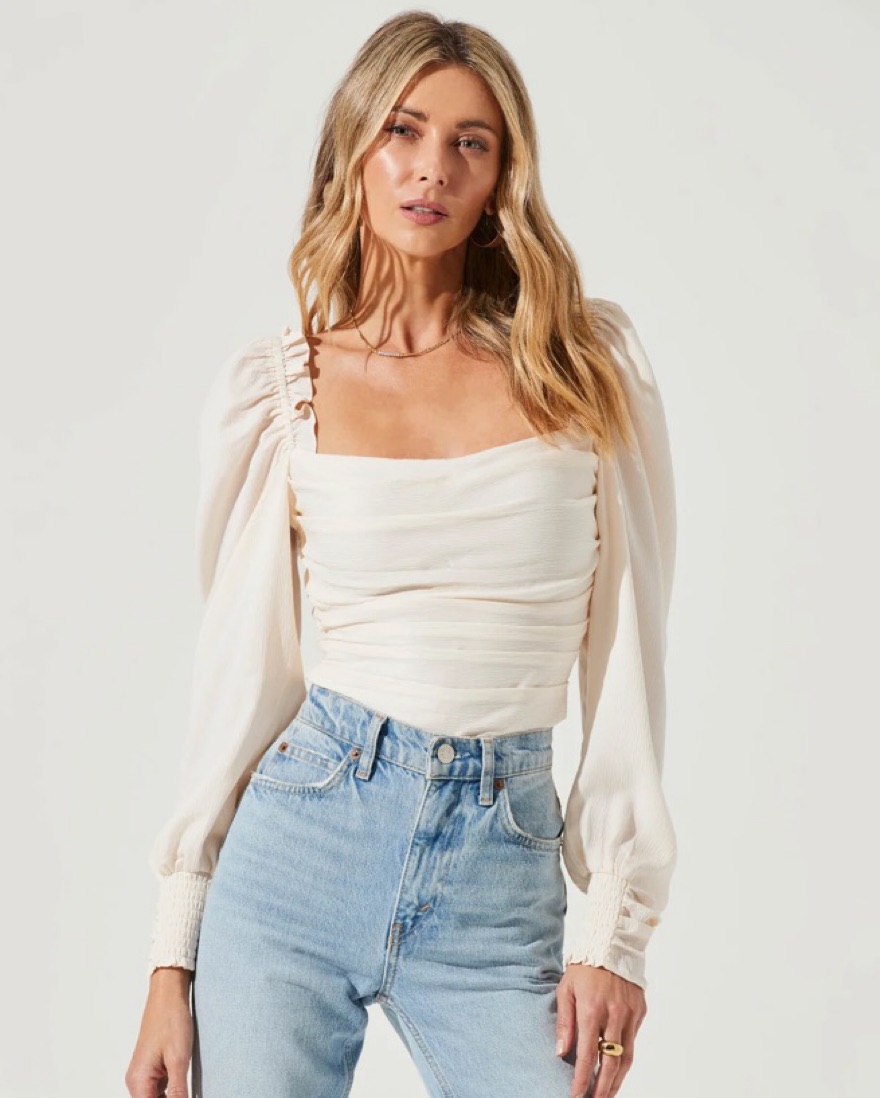 ASTR Puff Sleeve Square Neck Top - Cream