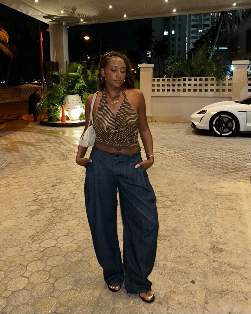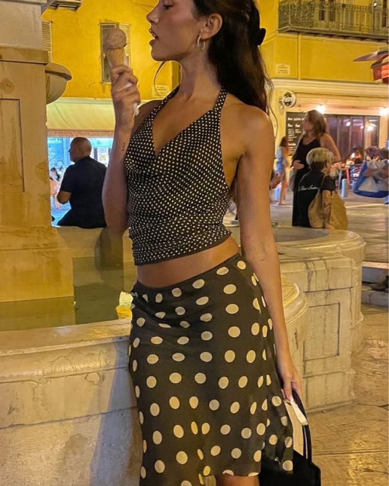 This playful polka dot too is perfect for a night out on the town or your upcoming vacation! Size small.