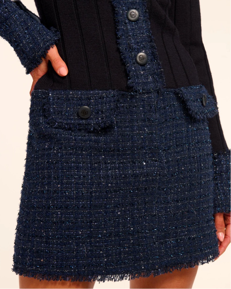 Chic and sophisticated navy tweed dress. Can fit sizes 00 to size 4 for a sexier tighter fit! Tag says 00