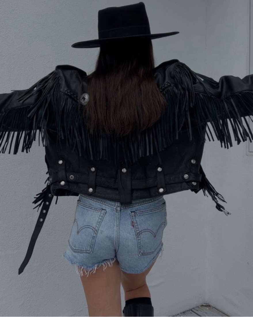 Vintage Fringe EmbellishedLeather Jacket by Vintage - Pickle