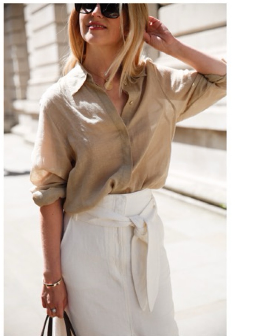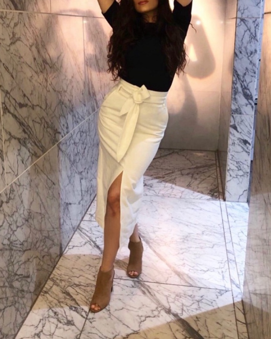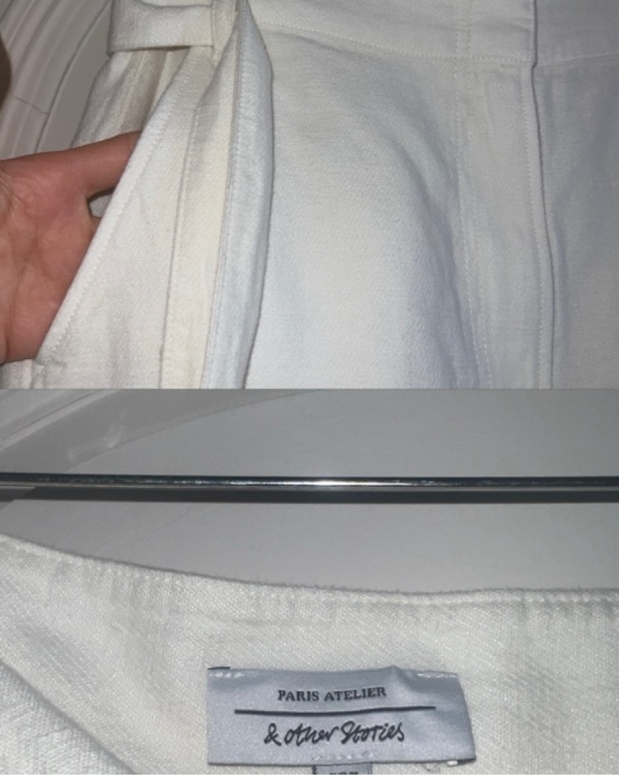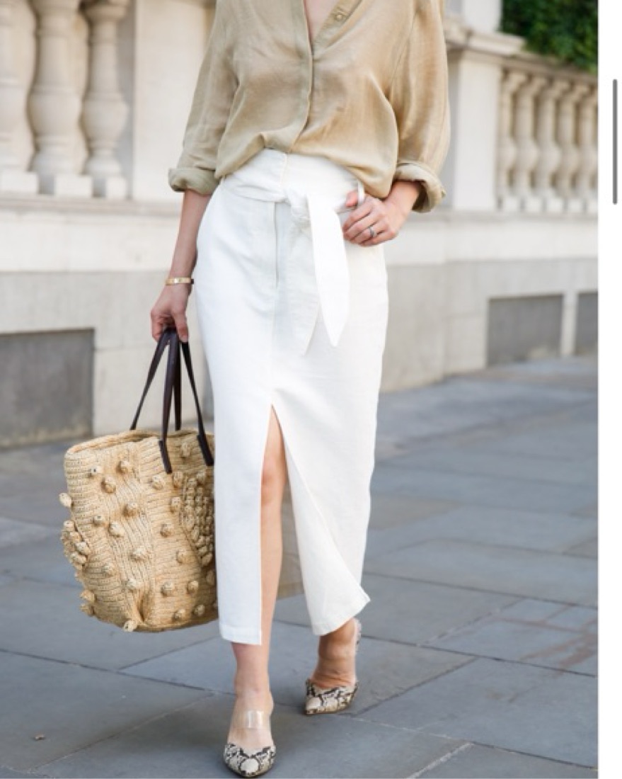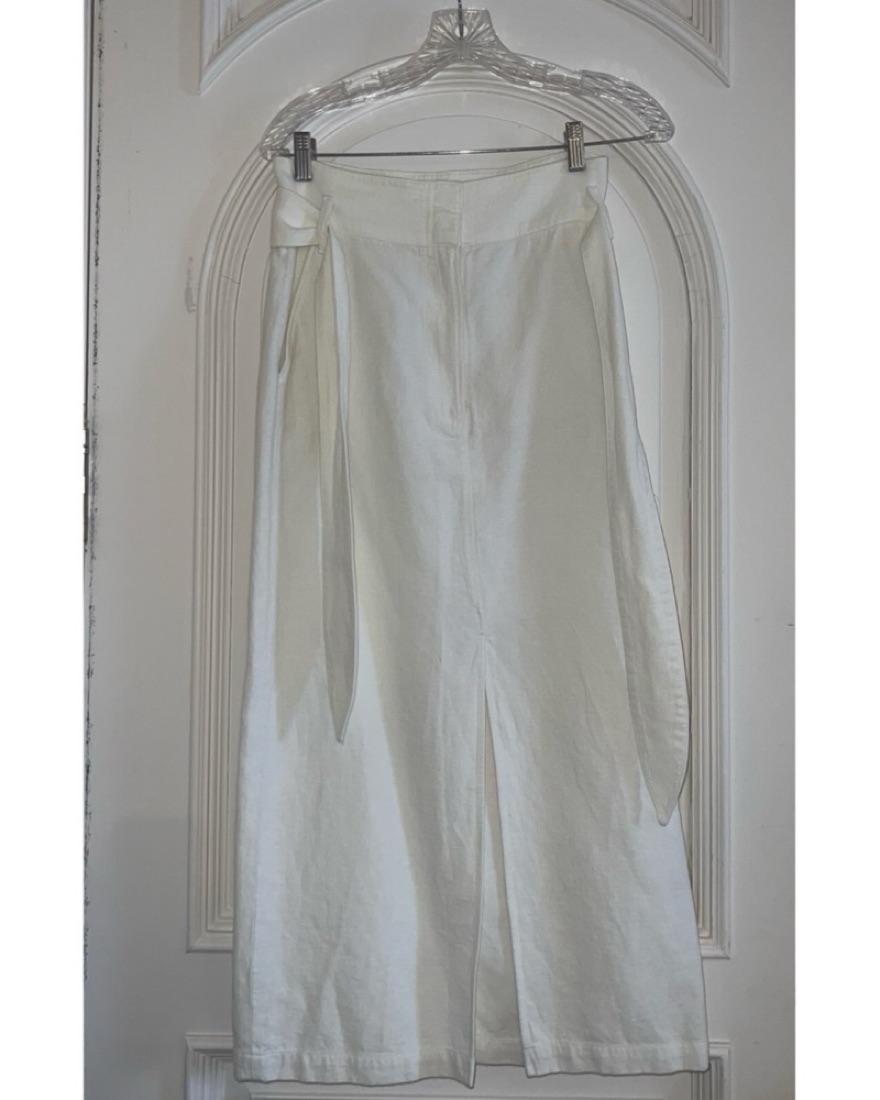 Chic ivory denim midi skirt from & Other Stories. Stylish slit in front and zipper/clasp closure with removable tie belt. In excellent, like-new condition. Size 4