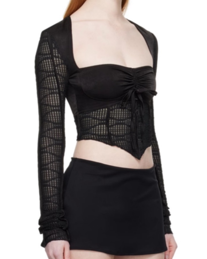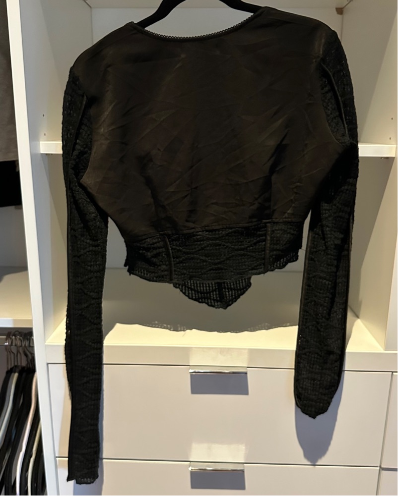in perfect condition / imo fits like an L (&i have a large chest) but could def fit xL- Waffle knit cotton-blend and stretch polyester satin T-shirt. Self-tie detailing and ruching at chest. Body 2: 55% cotton, 35% nylon, 10% elastane.