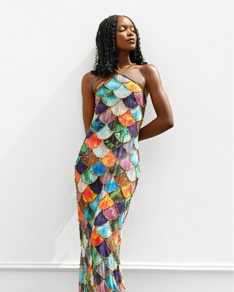 Kilentar Mami dress - crafted from lightweight chiffon fabric and adorned with gold beaded detailing