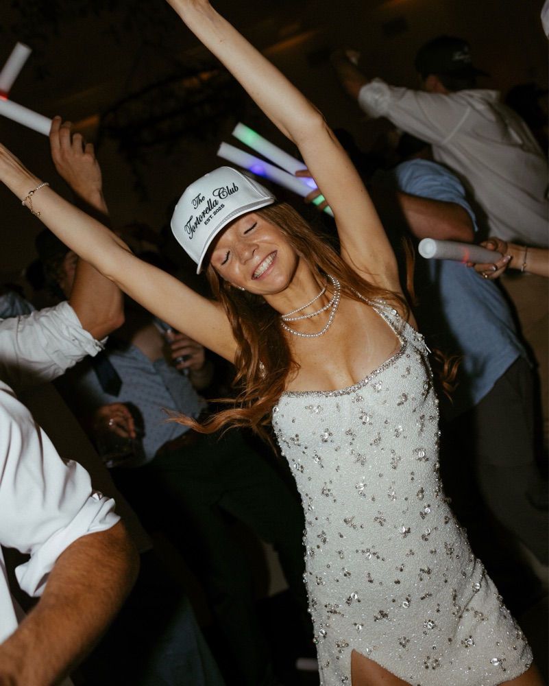 Clio Peppiatt's hand-embellished mini dress is sure to fill your rehearsal dinner or wedding reception with sparkle!!