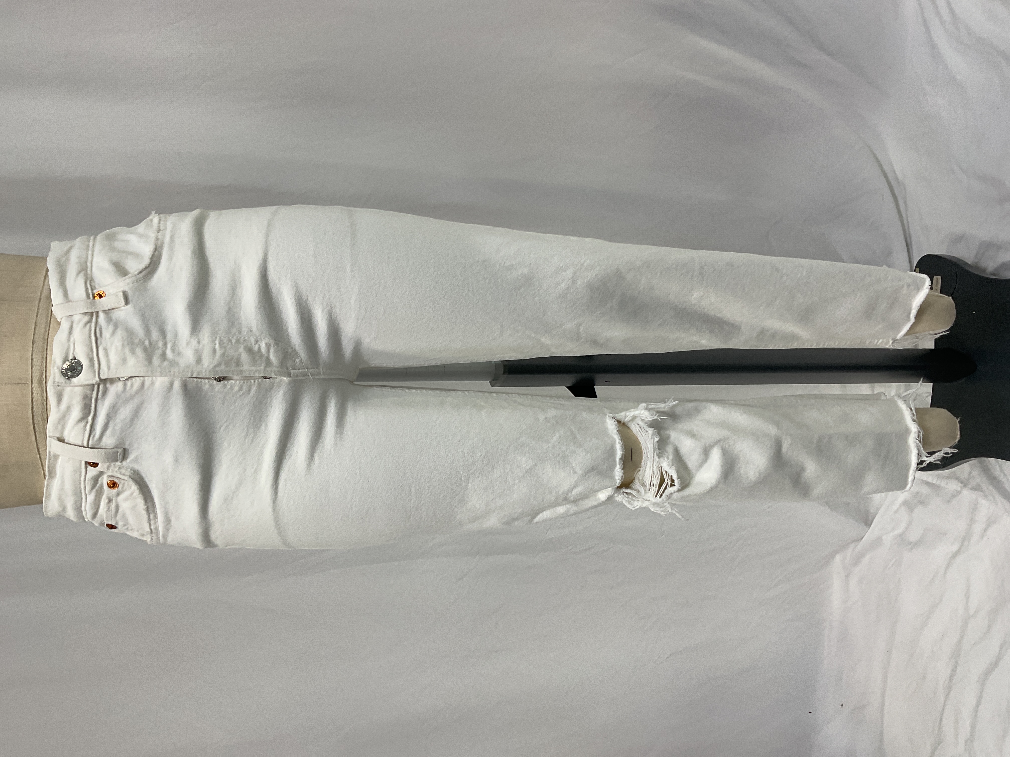 Vintage-inspired straight leg with a high-rise fit. Crisp white denim adds a fresh twist to retro styling.