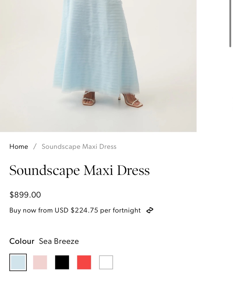 og bought for $899! Height in this: 5’6. Soundscape maxi dress, in sea breeze light baby blue color. AUS 8- US size 2, fits true to size! Perfect for black tie, formal, garden attire, birthday, gala etc! Price does not include dry clean, pls return clean or fees will incur!
