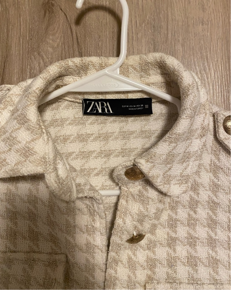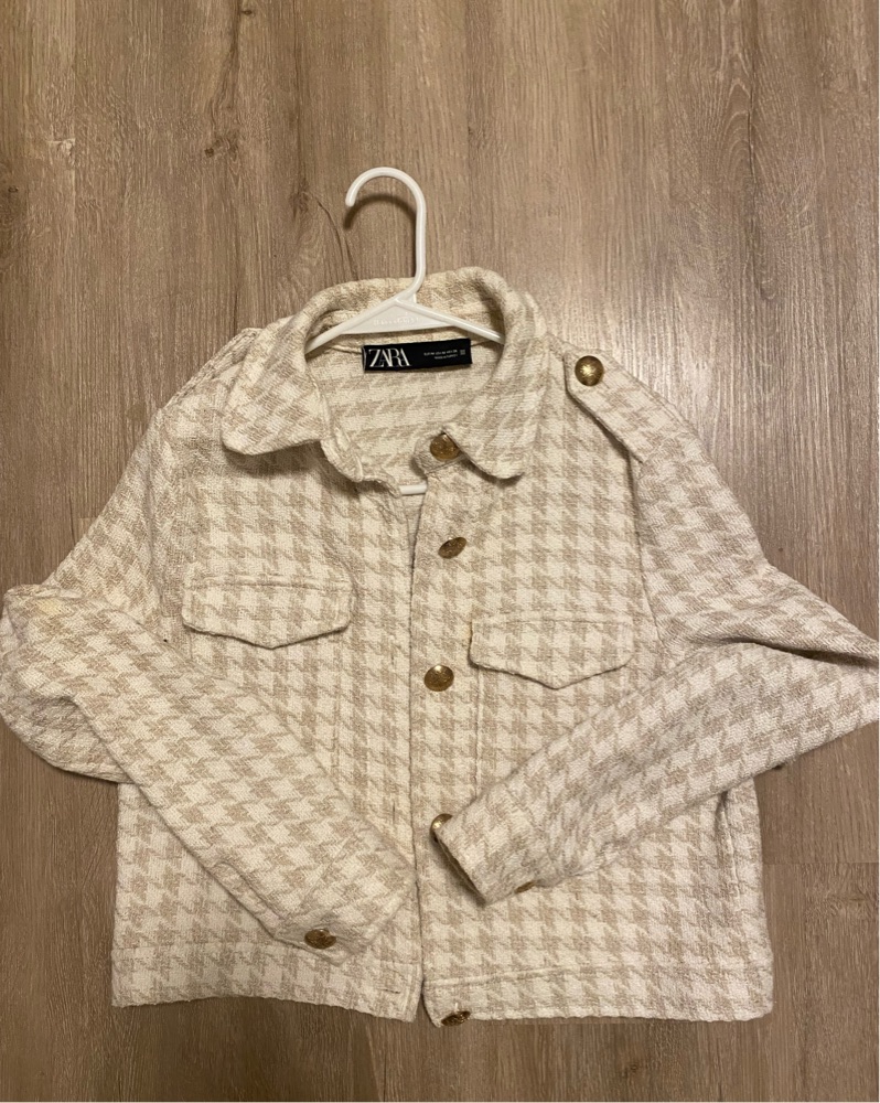 This chic Zara houndstooth jacket is perfect for a casual day out.