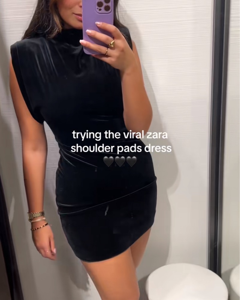 This sleek and sophisticated velvet dress with dramatic shoulder details is perfect for a chic night out. Pair it with heels and a statement clutch for a confident and alluring look.