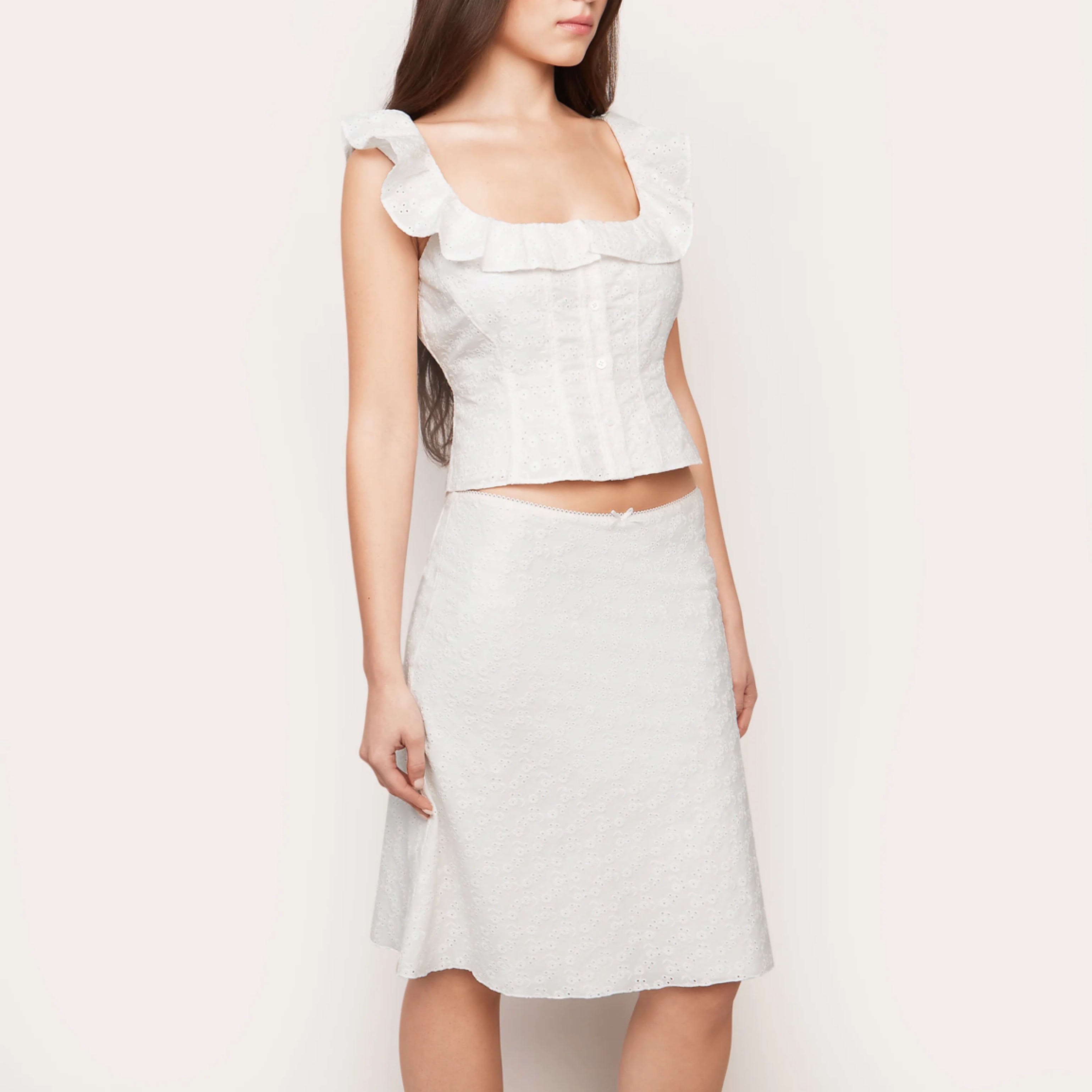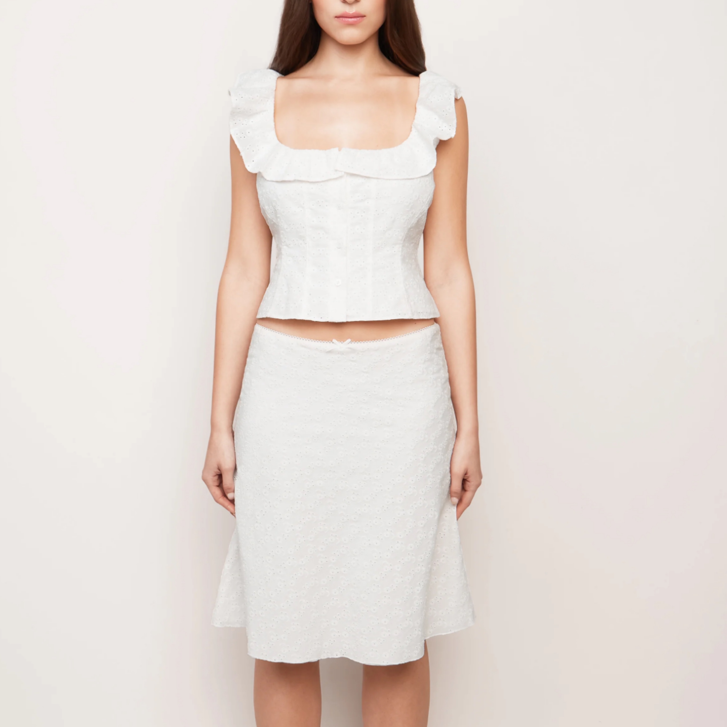 Adorable light weight white eyelet lace skirt! Perfect for a warm vacation or summer day in nyc! Willing to bundle top for rental! CLOSET POLICY: Happy to provide 100% fit returns for items returned same day. 50% refund 48 hours after recieving the item. 0% refund if notified at the end of rental
