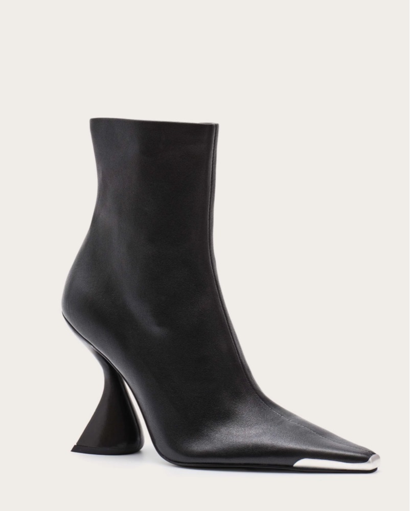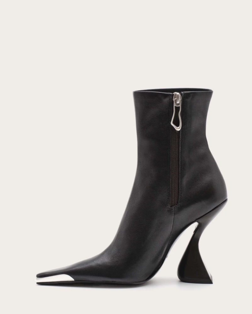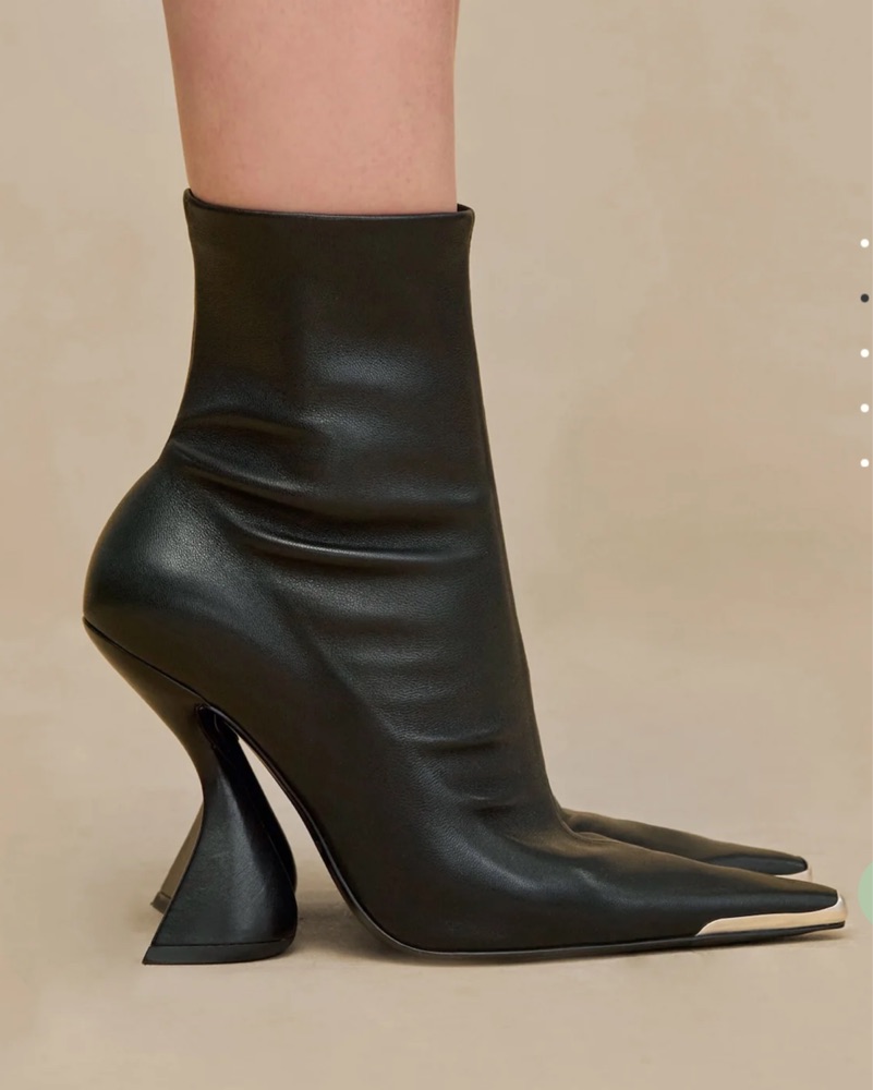 These striking black leather ankle boots are a must-have for any fashion-forward wardrobe. Pair them with everything from skinny jeans to midi dresses for a chic, statement-making look.