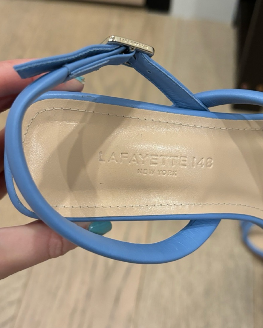 Blue healed sandals from Lafayette. Brand new only wore once.