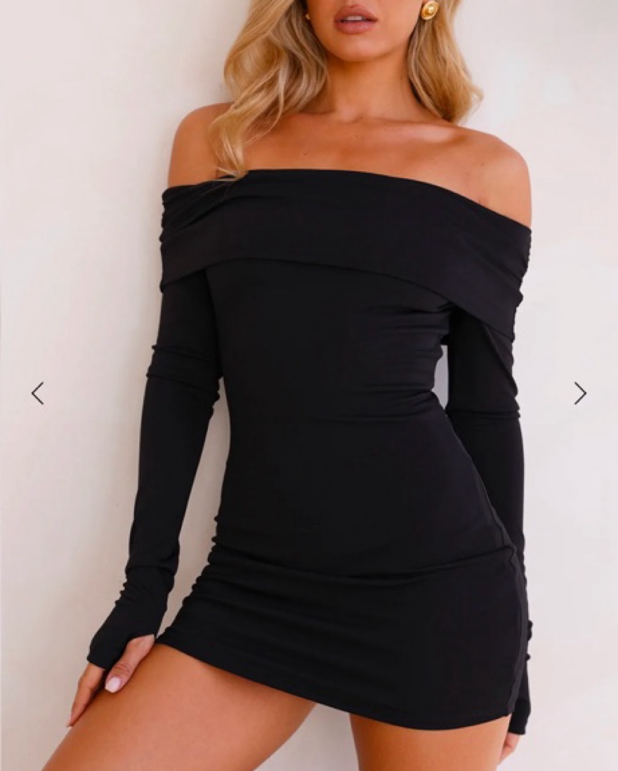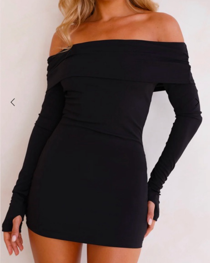 Off shoulder. Fold over neckline. Long sleeves with thumb holes. Double lined body.