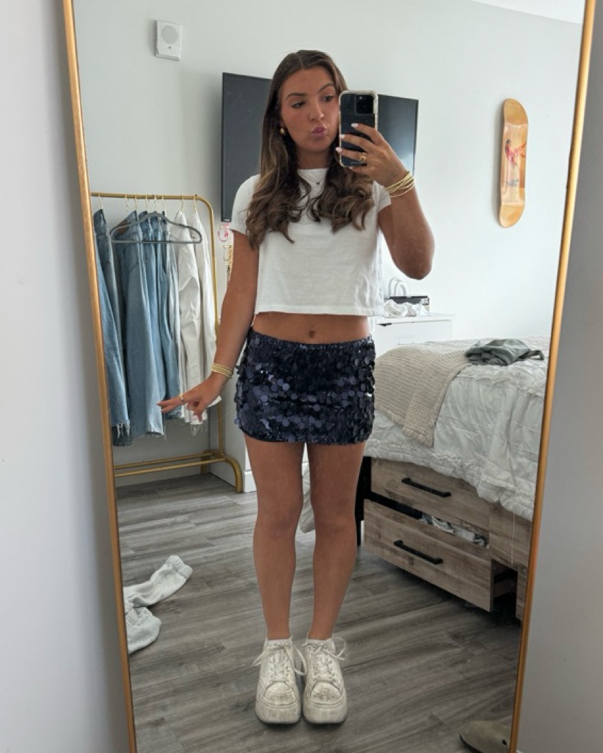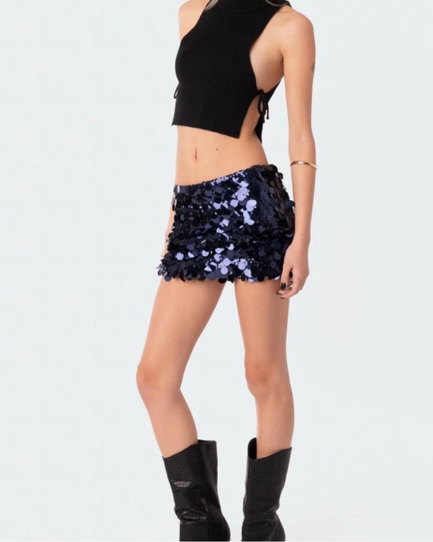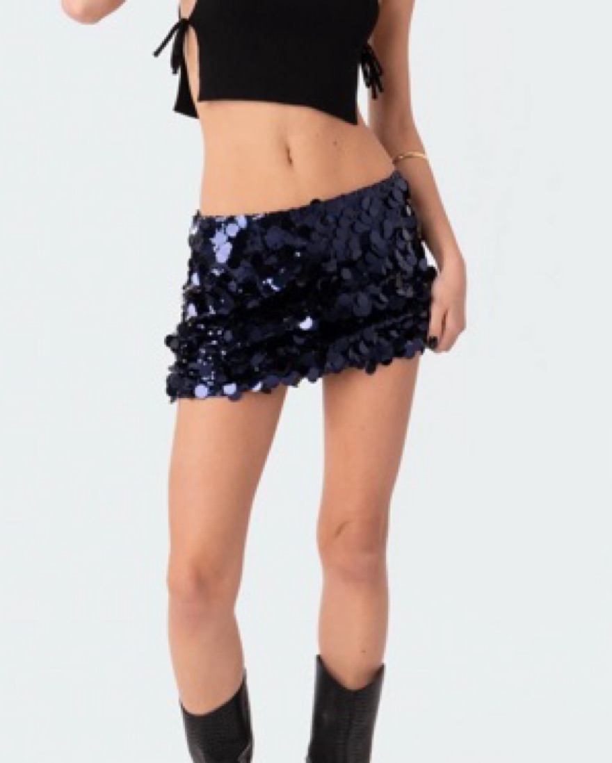 Edikted Navy Blue Sequin Skirt