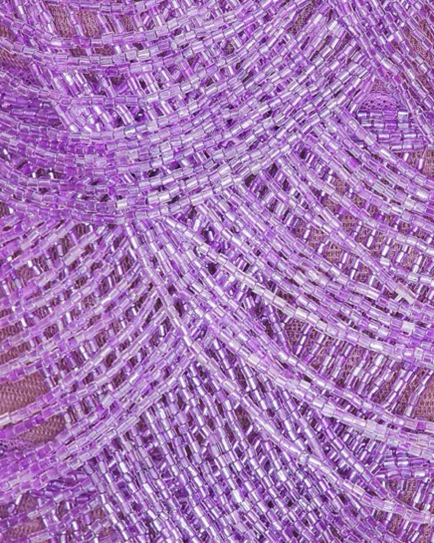 Beaded mini dress with a gold exposed side zipper closure and hidden shoulder zippers. *Delicate