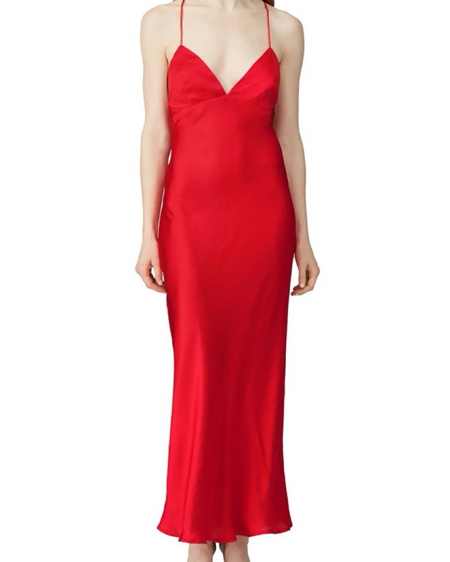 Adjustable back straps ensure this chic red satin slip gown fits like a dream.