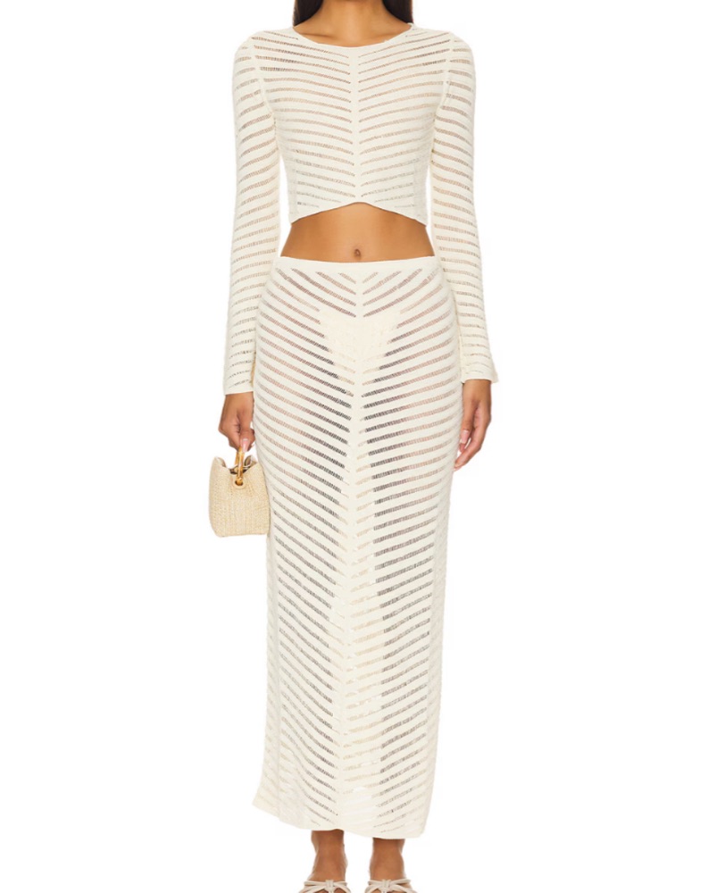 Devon Windsor Raya top and Rafaela skirt in butter. Top and bottom size small. True to size! Please take care of this set 🩷🩷🩷retail total $400